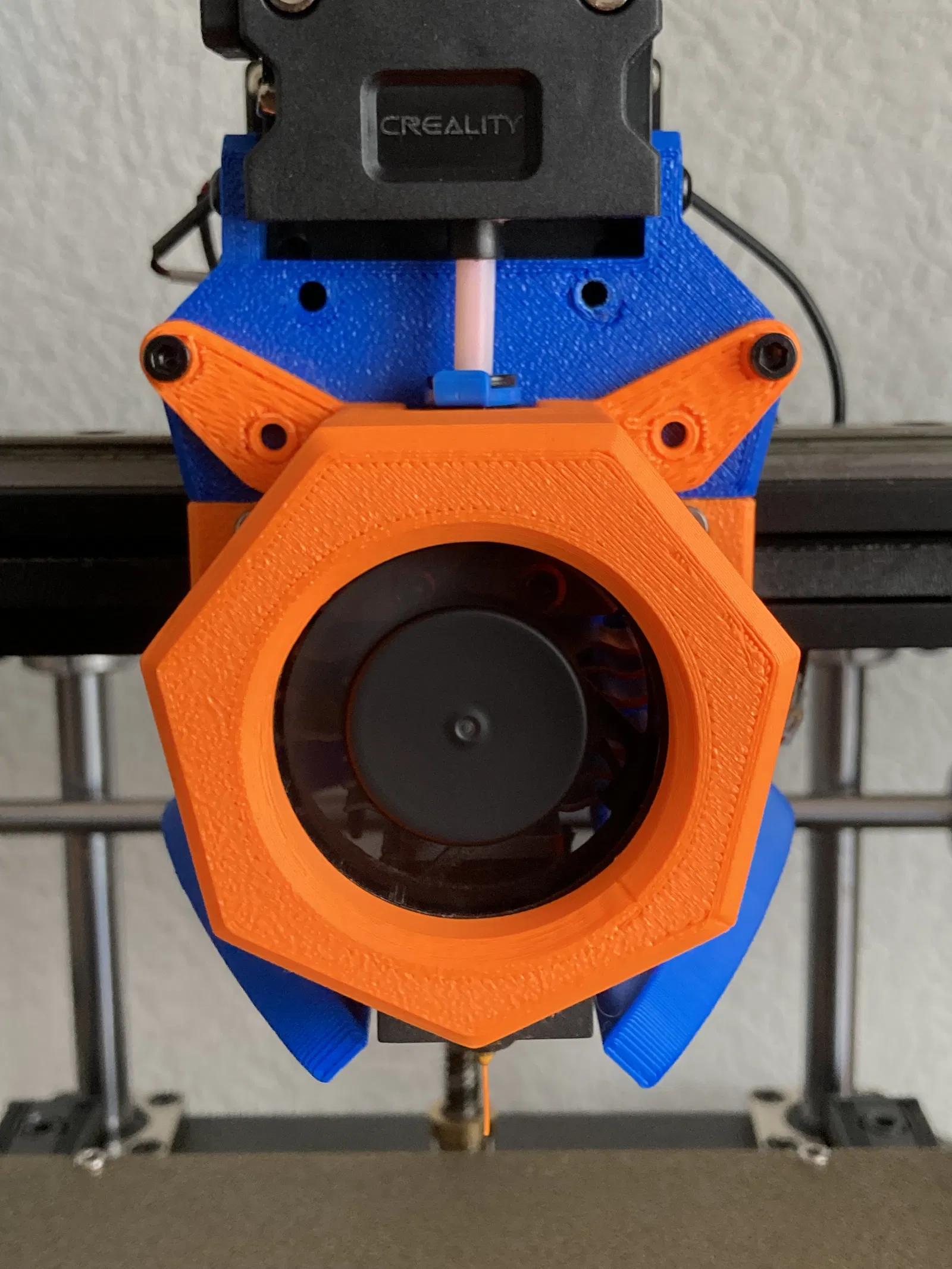 Bộ nâng cấp Ender-5 S1 với ray linear trục X MGN9, toolhead V2 dùng stock daughter board, 1x5015 part cooling, tương thích stock hotend hoặc E3D Revo-CR (chưa test). Có nắp quạt hotend mới và hỗ trợ Orbiter 2.0.