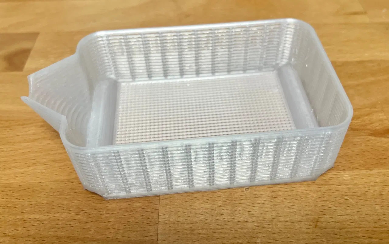 Mình thích ý tưởng của bản gốc, nhưng vì quá nhiều lỗ nhỏ nên in rất lâu. Bản này dùng các khe ngang ở hai bên và thêm đáy đan xen (interlaced bottom), giúp thời gian in chỉ còn khoảng một nửa so với bản gốc.