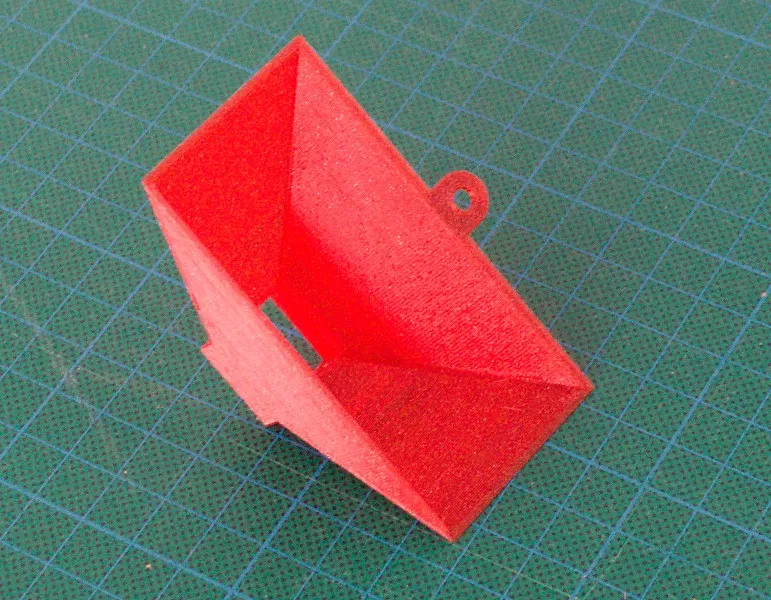 Một cái phễu hình chữ nhật, để nó vừa với một thùng linh kiện nhỏ. Cái phễu có thể không đối xứng, có nghĩa là phần rộng không nghiêng về một bên. Nếu các thùng linh kiện có nắp mở lên 90 độ, cái phễu không đối xứng sẽ vừa vặn. Các kích thước khác nhau của cái phễu có thể điều chỉnh bằng OpenSCAD customizer.