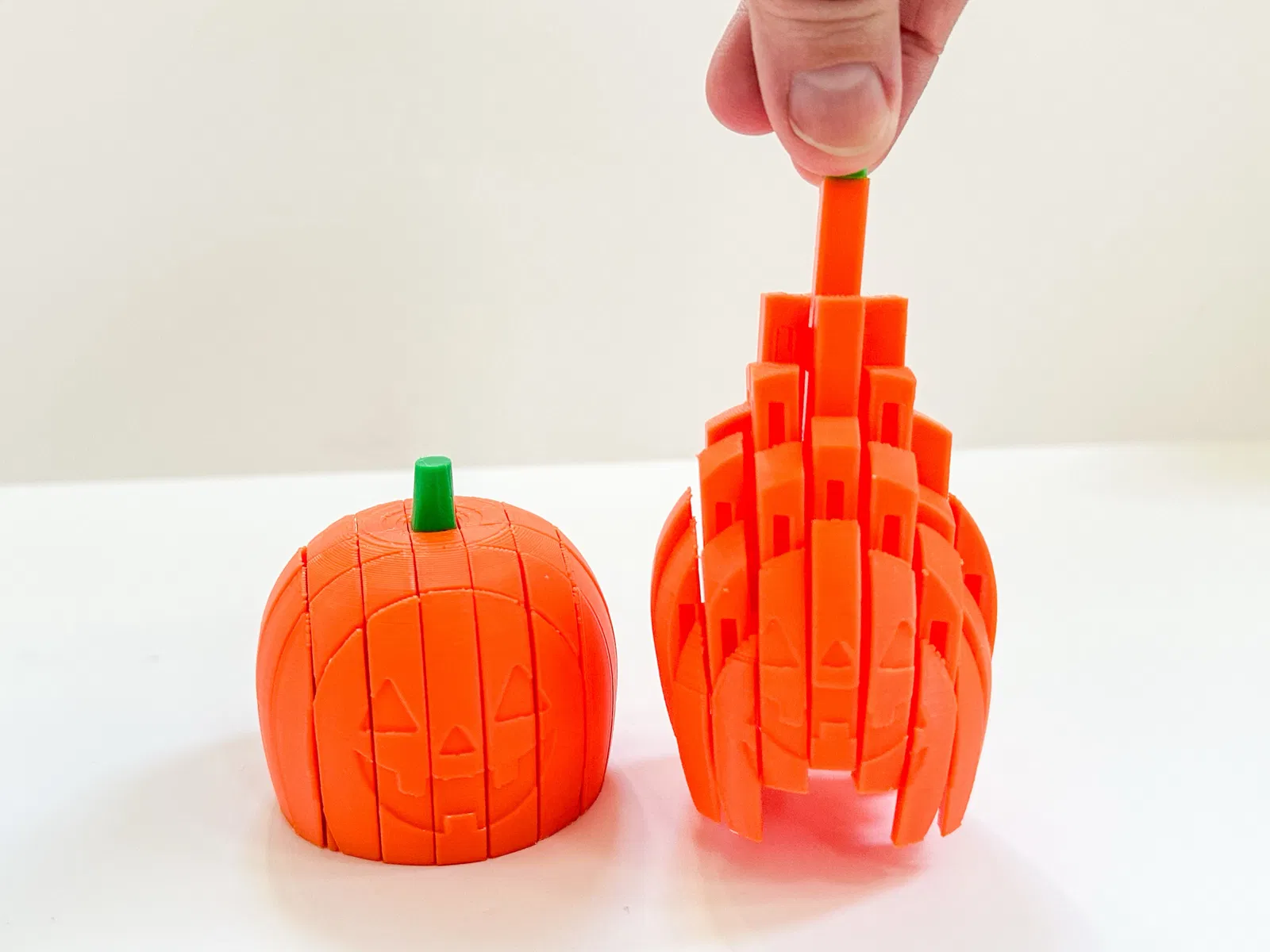 Mẫu Pixel Pumpkin fidget chủ đề Halloween với 2 kích cỡ (small/large). Bản in chi tiết, khuyến nghị dùng Basic PLA, layer height 0.2mm, infill 15%, bật detect thin walls và dùng supports quanh đáy & miệng để in ổn định.