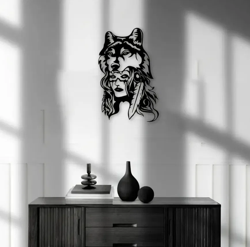 Mang một chút tinh hoa của văn hóa bản địa Bắc Mỹ vào không gian sống của bạn với mẫu tranh treo tường "Đầu Sói Tinh Thần Da Đỏ" độc đáo này. Được thiết kế tinh xảo, tác phẩm khắc họa hình ảnh đầu sói mạnh mẽ hòa quyện cùng gương mặt uy nghiêm của một chiến binh da đỏ, tạo nên một biểu tượng đầy sức hút về sự tự do, bản năng hoang dã và tinh thần bất khuất. Đây không chỉ là một vật trang trí đơn thuần, mà còn là một điểm nhấn nghệ thuật thể hiện cá tính và gu thẩm mỹ tinh tế của gia chủ.