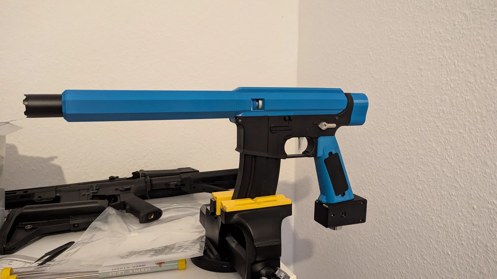 Đây là một thử nghiệm làm Upper Receiver kèm Hand Guard theo kiểu mỏng, tối giản và nhẹ, nhưng vẫn tương thích với linh kiện tiêu chuẩn. Thiết kế nhắm tới anh em chơi Speedsoft và hy vọng giúp thú chơi này dễ tiếp cận hơn.