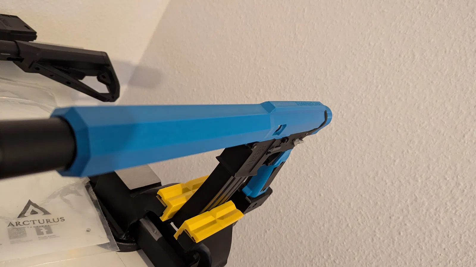 Upper Receiver + Hand Guard tối giản, nhẹ, nhắm tới Speedsoft nhưng vẫn chơi với linh kiện tiêu chuẩn. Tích hợp seat cho Hopup Chamber, ren EU M32x1,5, nhiều biến thể theo hãng (Specna/G&G/Cyma). Có hướng dẫn in và hậu xử lý.