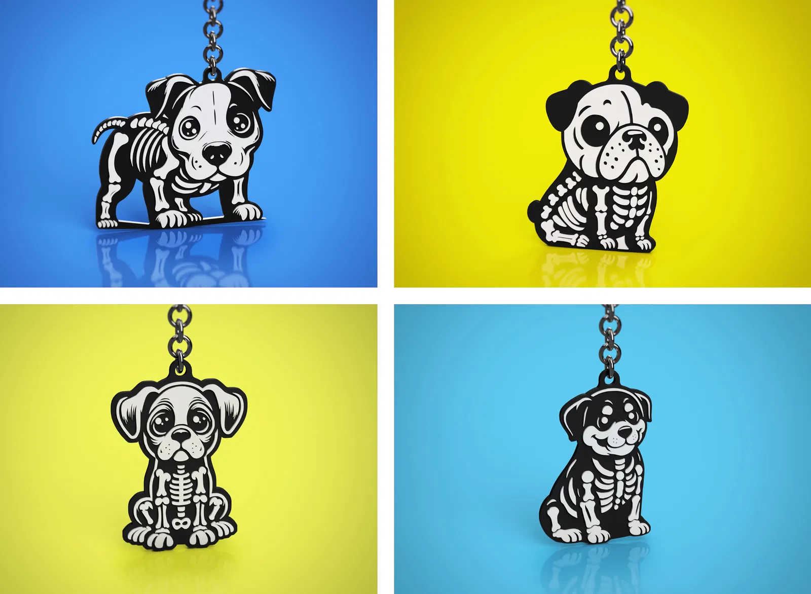 Beagle, Pit Bull, BullDog, Boxer và Rottweiler dạng móc khóa phiên bản Halloween Skeleton