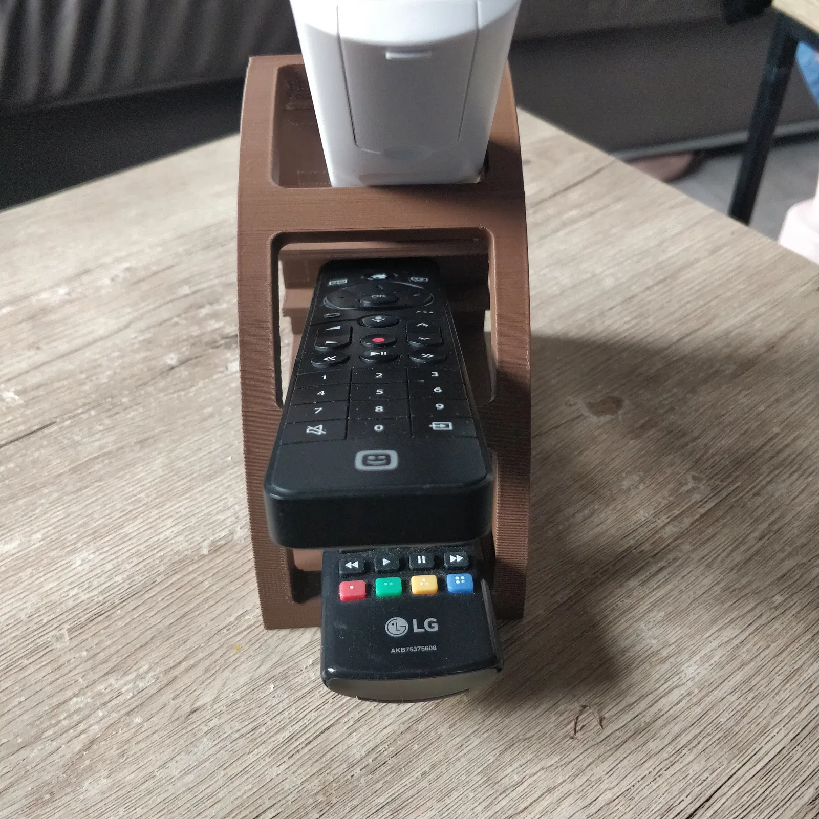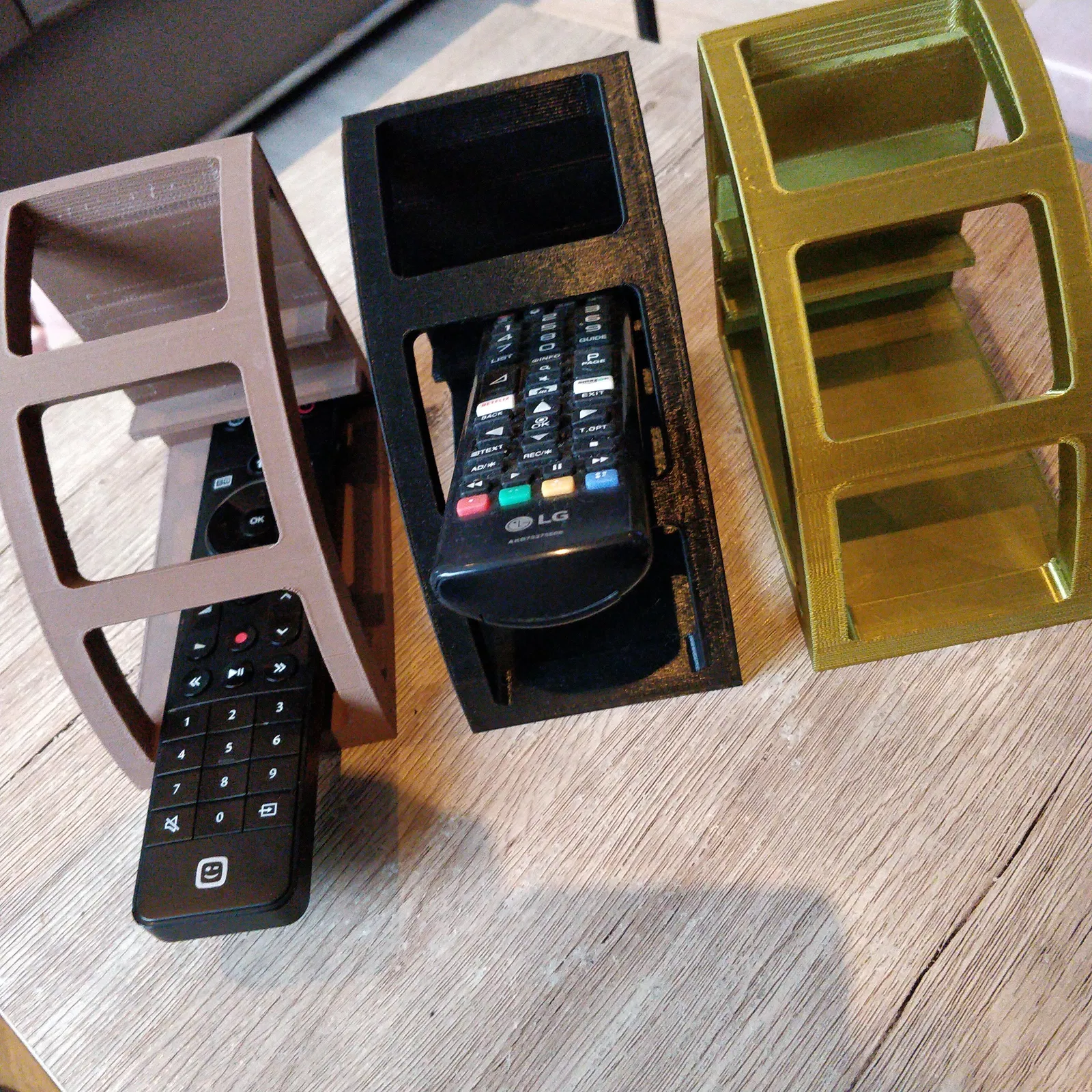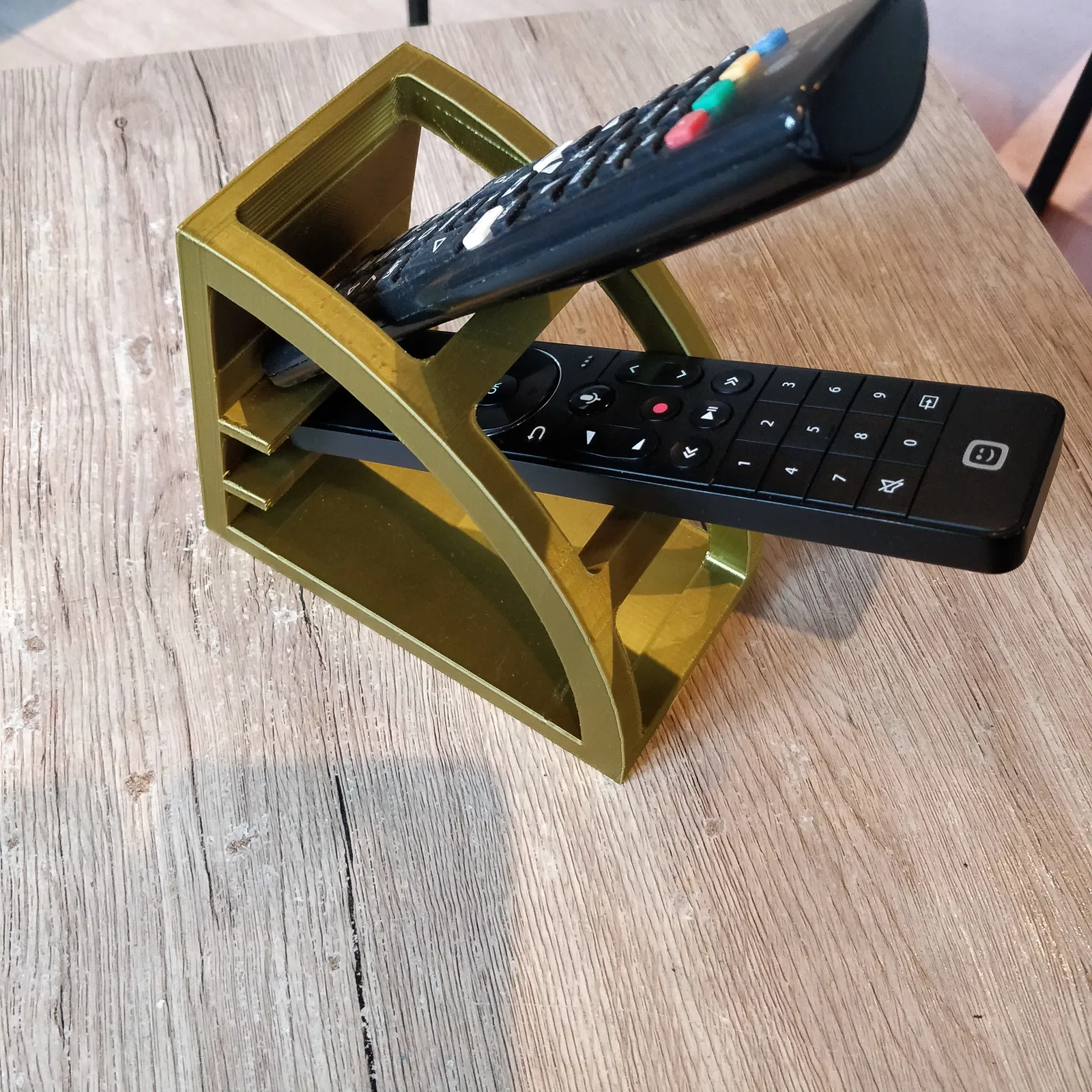 Remote Organizer giúp sắp xếp gọn gàng, chứa tối đa 3 remote (có thêm phiên bản 4 remote). Khuyến nghị in với mặt lưng úp phẳng lên build plate và cần supports để ra form đẹp.