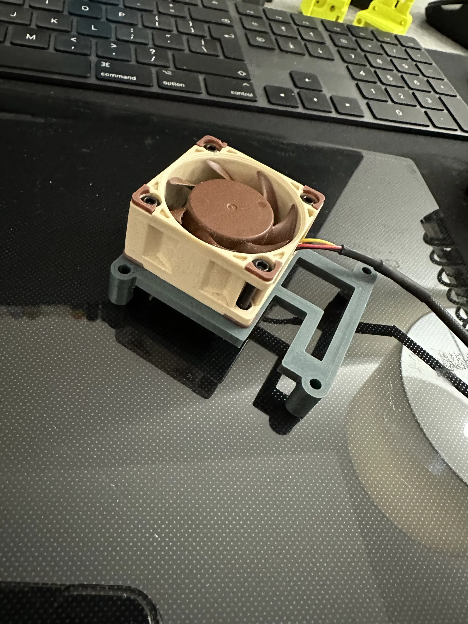 Cái gá này dùng đúng chuẩn Voron: heat insert x4 để bắt quạt.