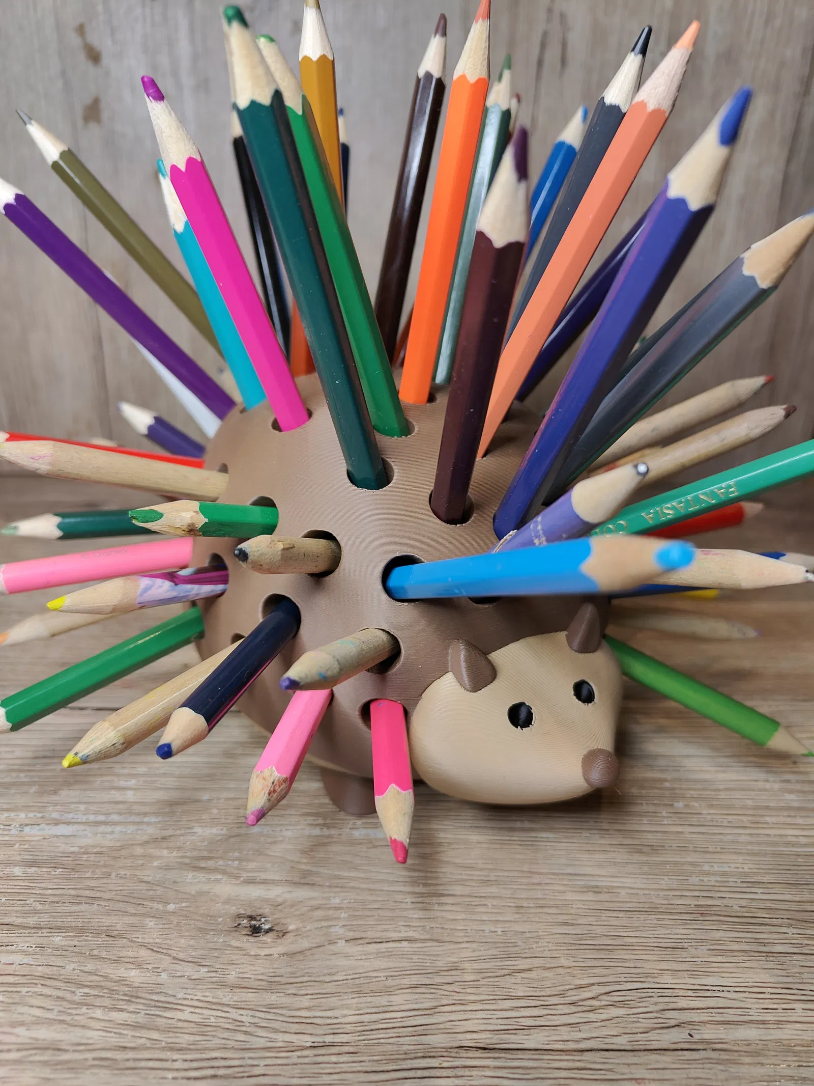 Pencil Hedgehog là đồ giữ bút chì hình nhím dễ thương, vừa trang trí bàn làm việc vừa làm quà tặng cho người yêu động vật và thích thiết kế lạ. Chứa tối đa 50 bút chì và in không cần supports.