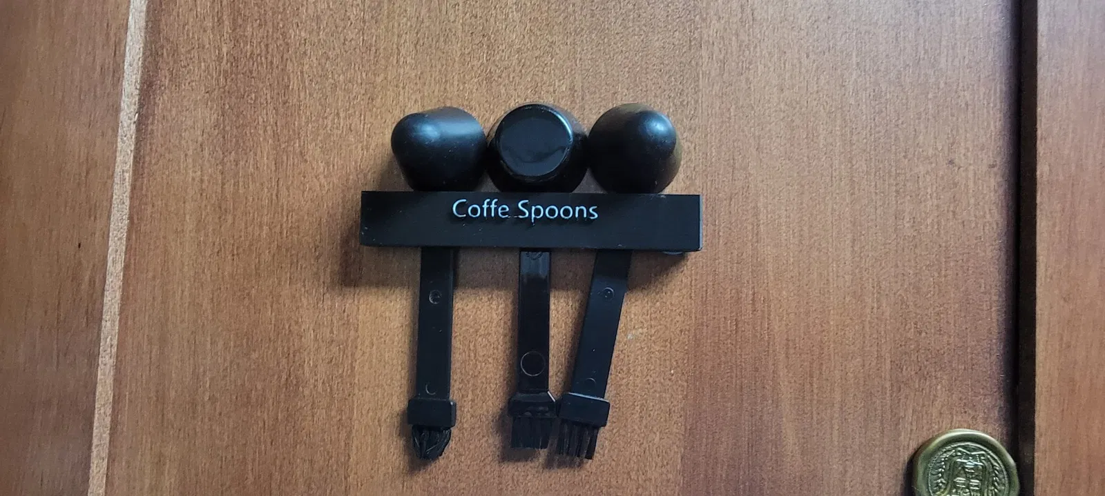 Đây là một giá đỡ thìa đo cà phê. Có hai phiên bản, một phiên bản có nhãn và đủ lớn cho ba thìa. Phiên bản còn lại có kích thước cho hai thìa và không có nhãn. Nó được gắn vào bên trong cánh cửa của một tủ bếp bằng bột dán có thể tháo rời. Mục đích là để đặt các thìa đo bên trong cánh cửa tủ nhằm tận dụng không gian chưa sử dụng.