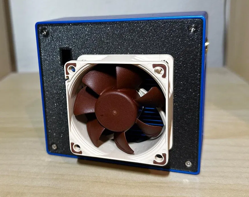 Tấm ốp hông tuỳ biến này thay cho tấm zin của Lucky Miner LV07, cho phép lắp quạt Noctua NF-A6x25 vừa êm vừa mạnh. Bản nâng cấp này gồm việc tháo quạt nguyên bản và gắn Noctua NF-A6x25 vào đúng vị trí đó, giúp cải thiện hiệu suất tản nhiệt rõ rệt. Nhờ vậy, Lucky Miner LV07 thậm chí có thể overclock để tăng hiệu năng.