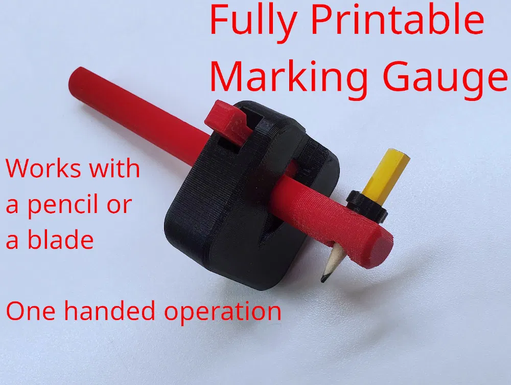 Đây là một cây marking gauge được in 3D hoàn toàn. Dùng được với bút chì hoặc lưỡi dao. Thao tác bằng một tay.