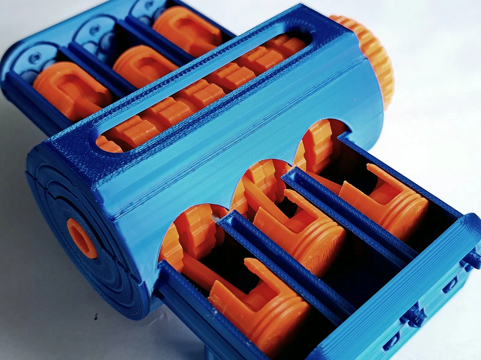 Mẫu 6 Cylinder Boxer Engine có trục khuỷu và piston chuyển động. Kích thước 96×143×61 mm, nặng 0,14 kg. Khuyến nghị in trên build plate trơn, tránh elephant foot/over-extrusion; PLA+ layer 0,16 mm.