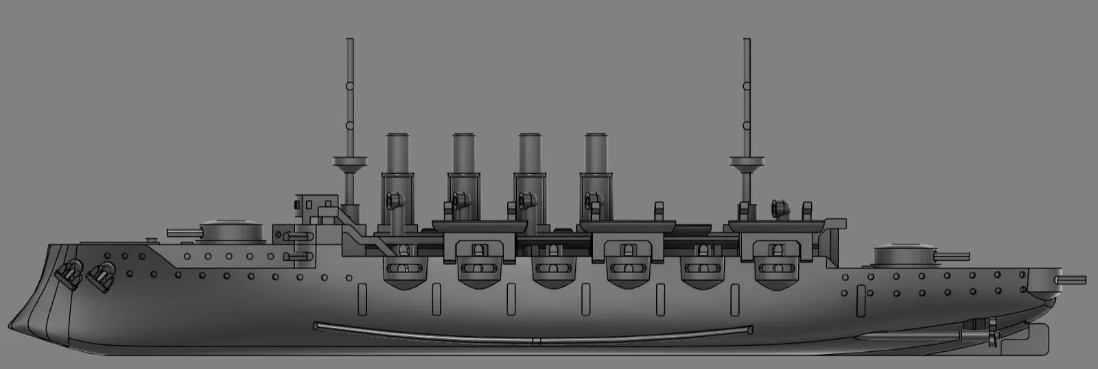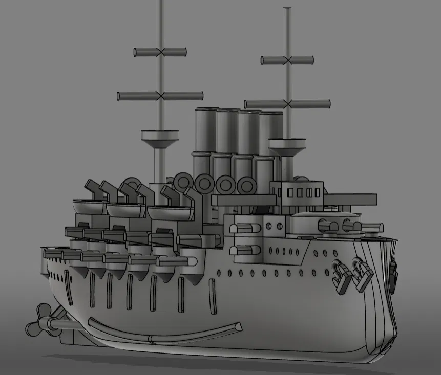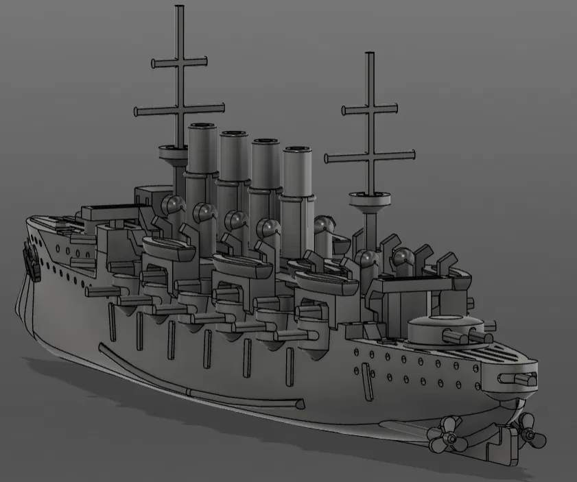 Mẫu này lấy cảm hứng từ vài chiếc armored cruiser giai đoạn 1890–1910, kèm thêm một số ảnh hưởng khác. Lưu ý là nó không nhằm tái hiện lịch sử cho chính xác; chủ yếu để làm model sơn cho vui, hoặc dùng trong bất kỳ vai trò nào bạn cần một tàu chiến “generic” kiểu thập niên 1800.