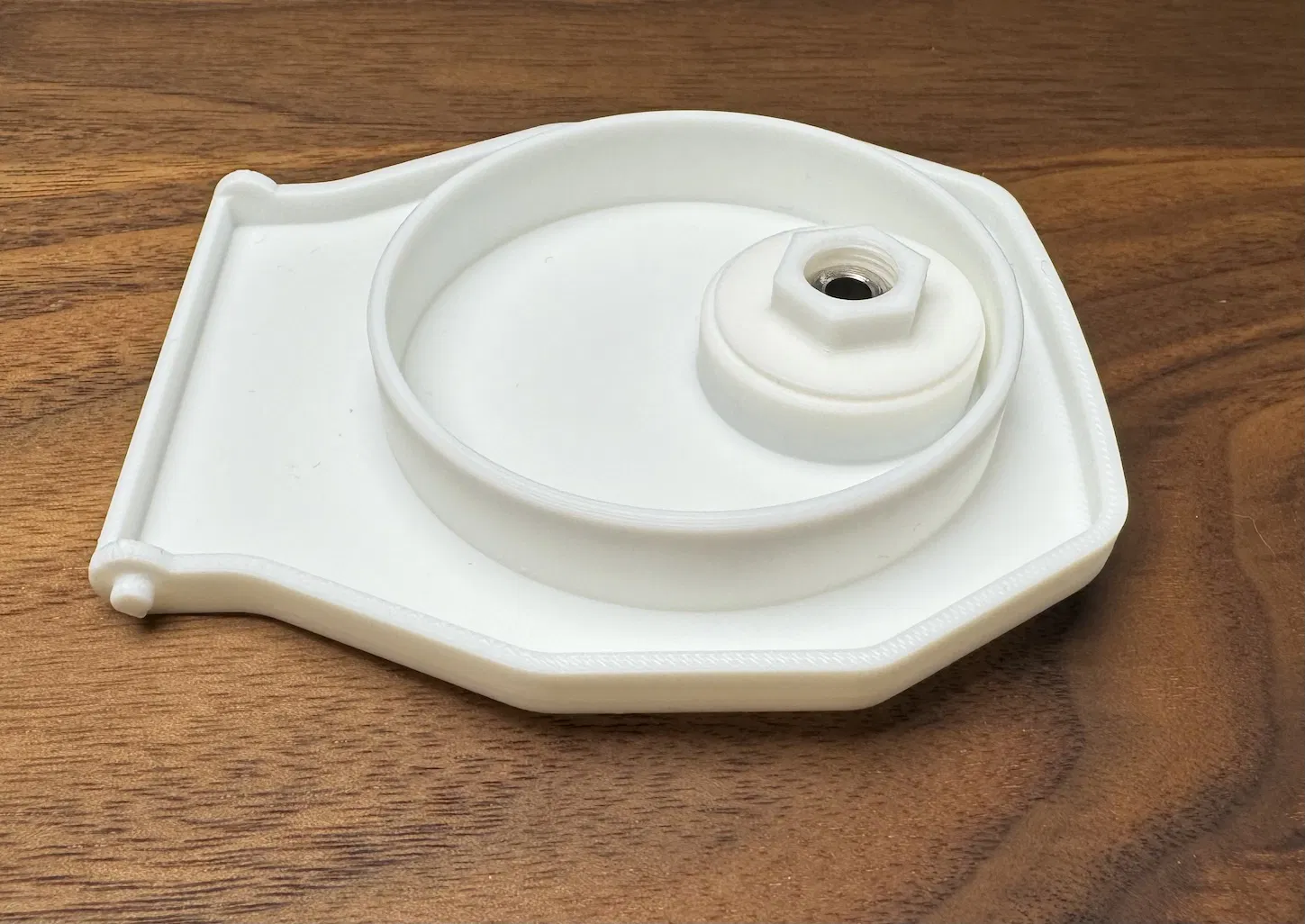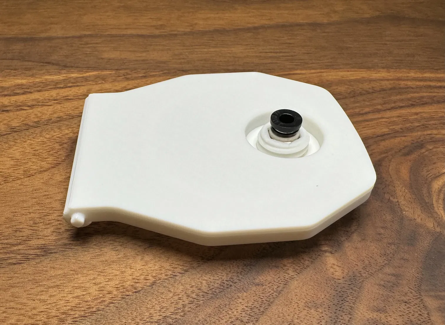 Phần fitting được thiết kế thụt xuống một chút để nắp có thể in phẳng, chỉ cần support tối thiểu (gỡ thủ công). Về thẩm mỹ thì đẹp nhất nếu in trên mặt bàn smooth PEI plate thay vì textured.