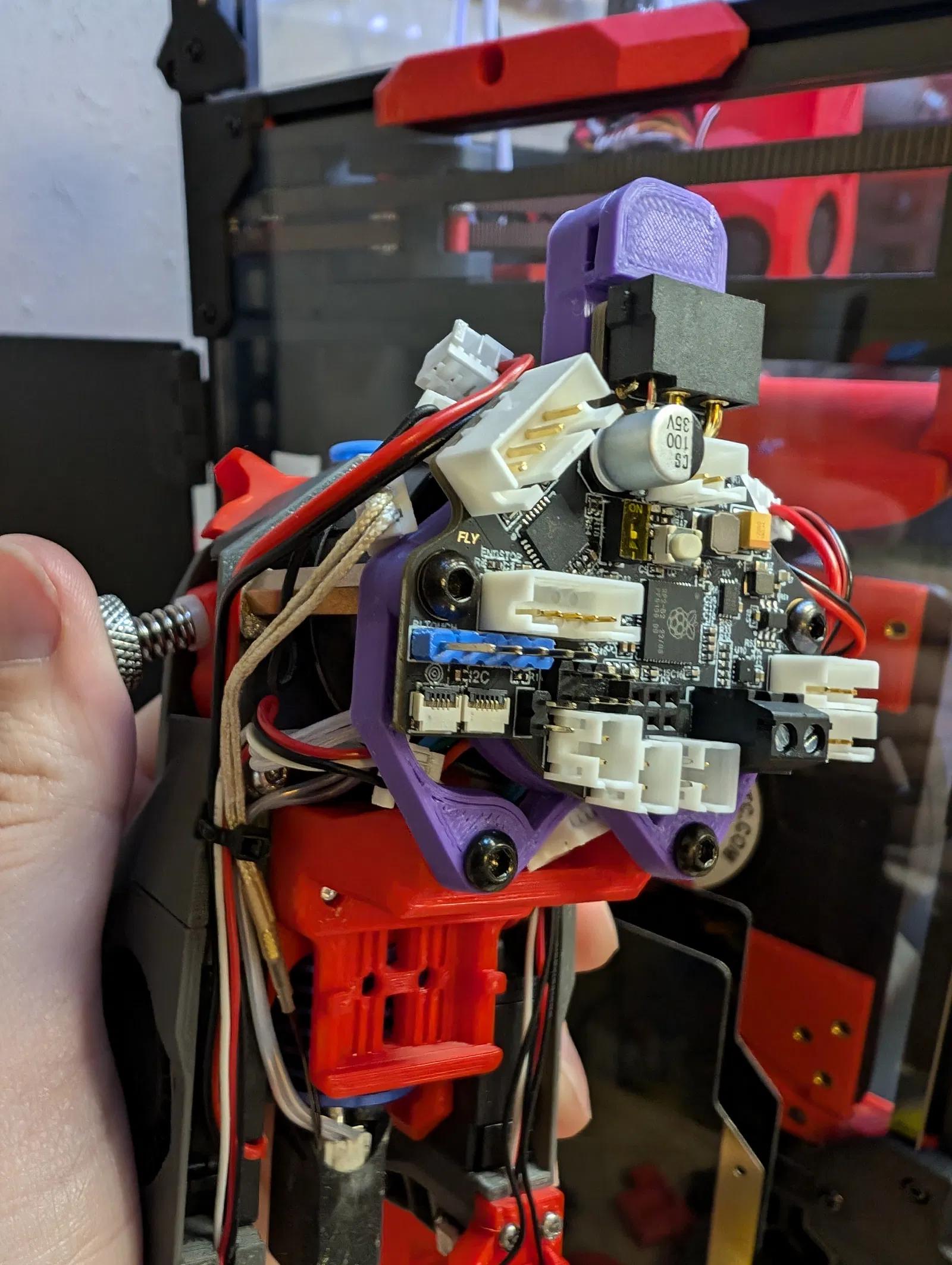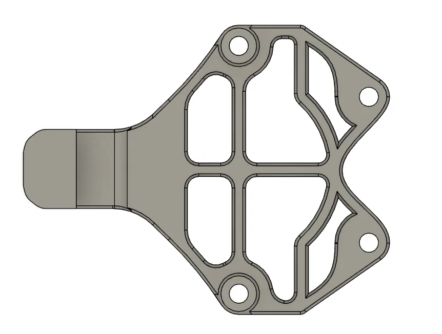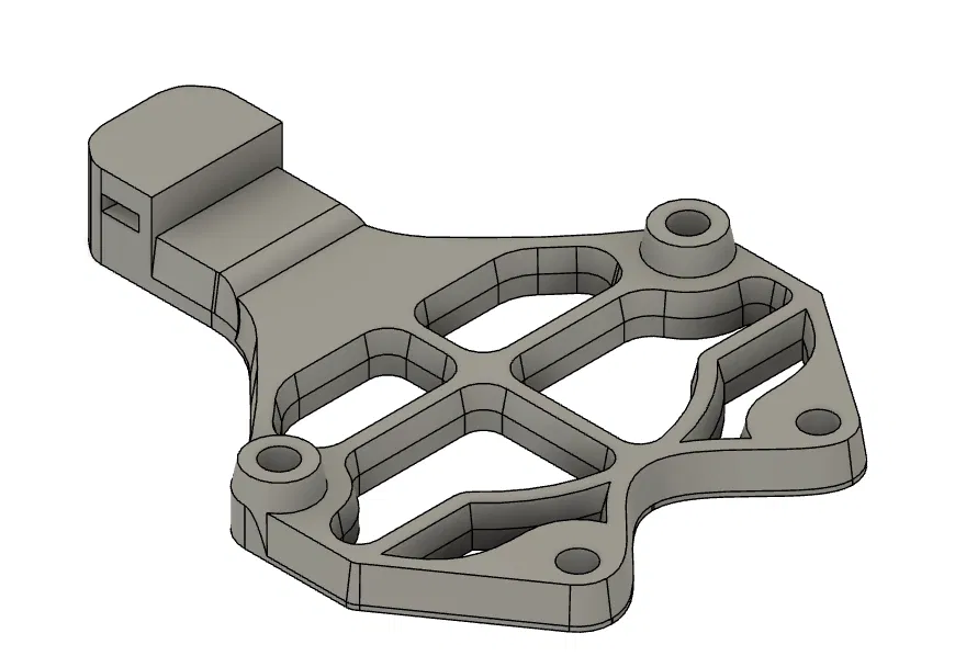 Mình cần strain relief cho đầu connector trên FLY SHT-36 V3, nhưng cũng muốn phần board mount trên toolhead cứng cáp hơn. Nên mình thêm các điểm bắt để dùng được hai điểm bắt ốc phía dưới trên x gantry.