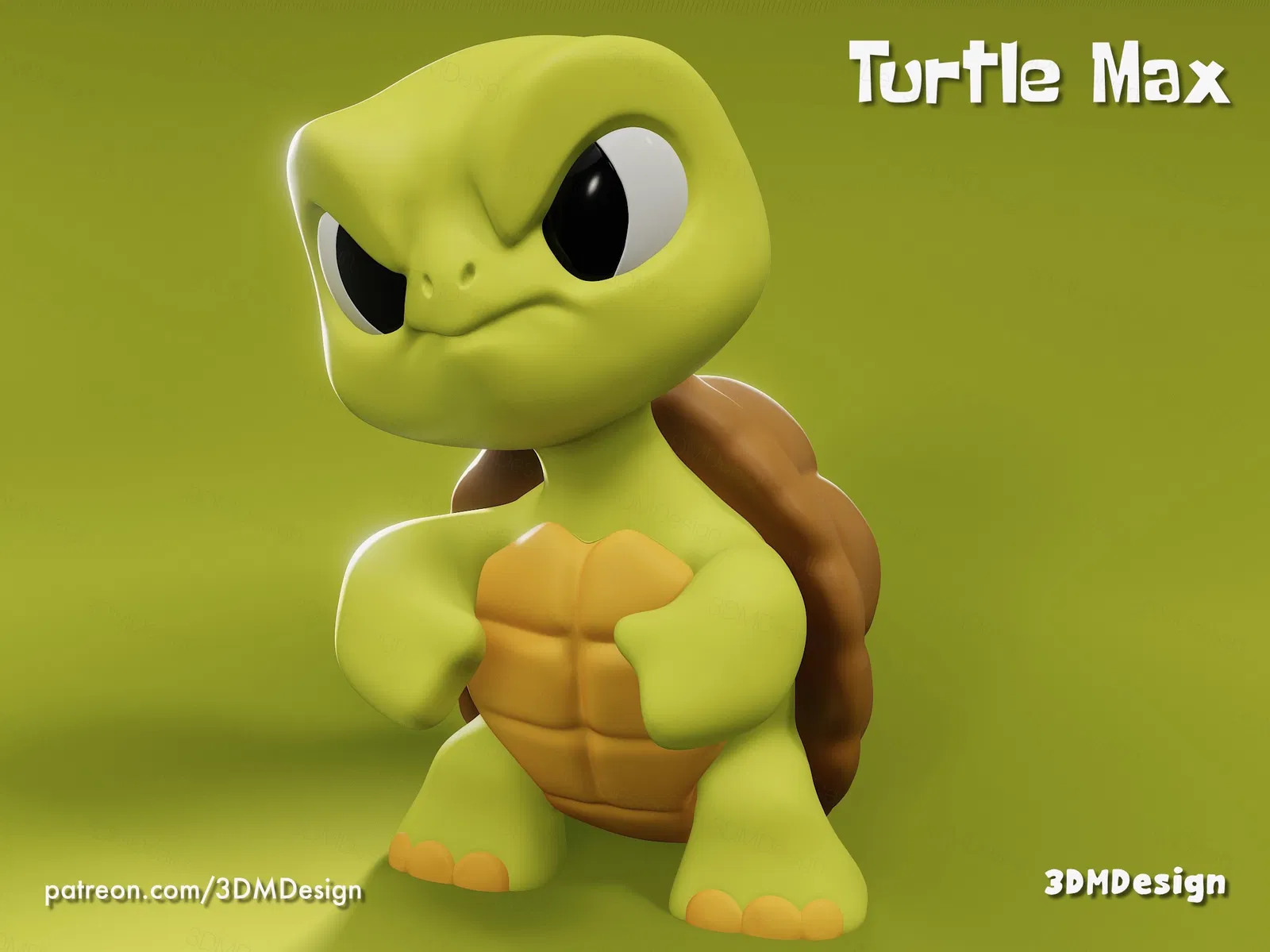 Shell Yeah! – chú rùa tí hon nhưng khí chất “đừng có giỡn mặt” cực gắt. Dáng đứng tự tin, biểu cảm hầm hố mà vẫn dễ thương, hợp để trưng bày, làm quà hoặc in 3D cho bộ sưu tập thú cartoon.