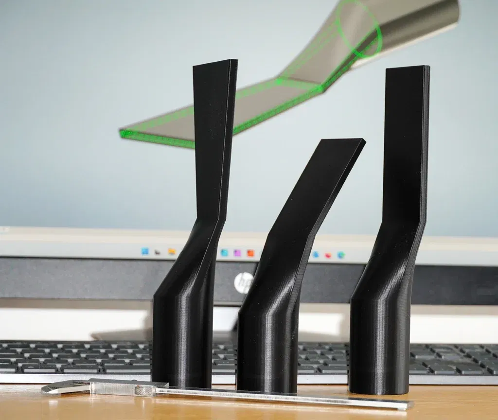 Bộ đầu hút (nozzle) thiết kế để làm sạch các khe rãnh rất hẹp trong nhà và nhất là trong xe hơi. Lắp vừa ống máy hút bụi tiêu chuẩn 35 mm. In tiết kiệm vật liệu, không cần support.