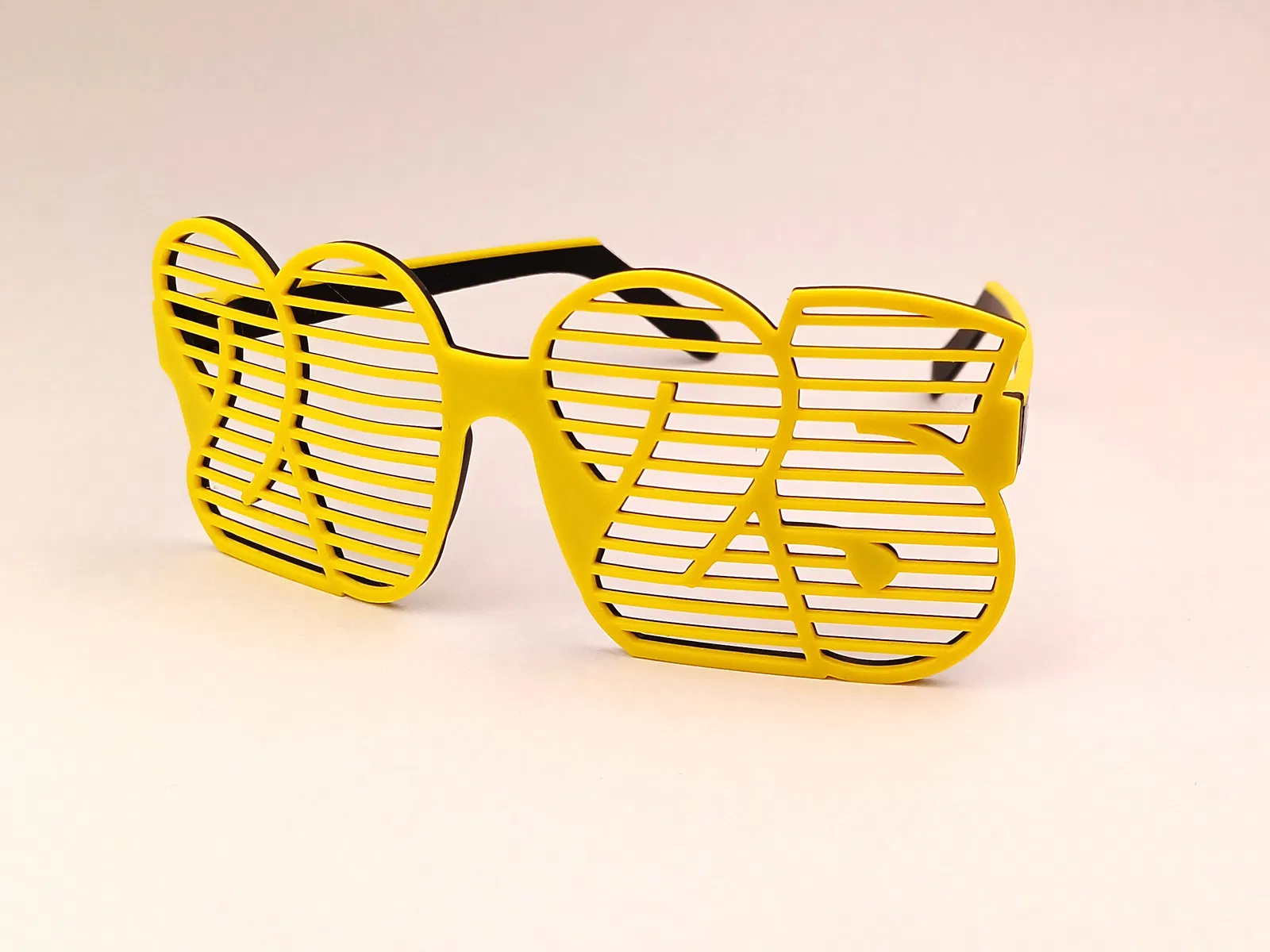 Mẫu kính “Party glasses - 2025” vui nhộn để chào đón năm mới 2025. In khoảng 1h47 trên MK4, có thể đổi màu trong lúc in. Khuyên dùng PLA để uốn khung bằng nước nóng, dùng brim và custom supports cho khớp xoay.