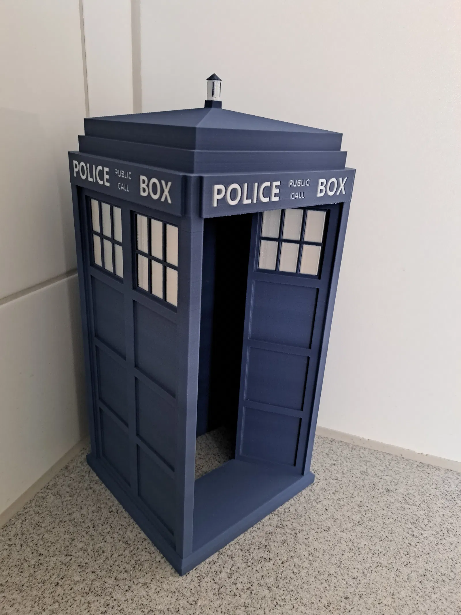 Đây là một hộp đựng khăn giấy (tissue box cover) theo hình TARDIS từ series truyền hình Doctor Who.