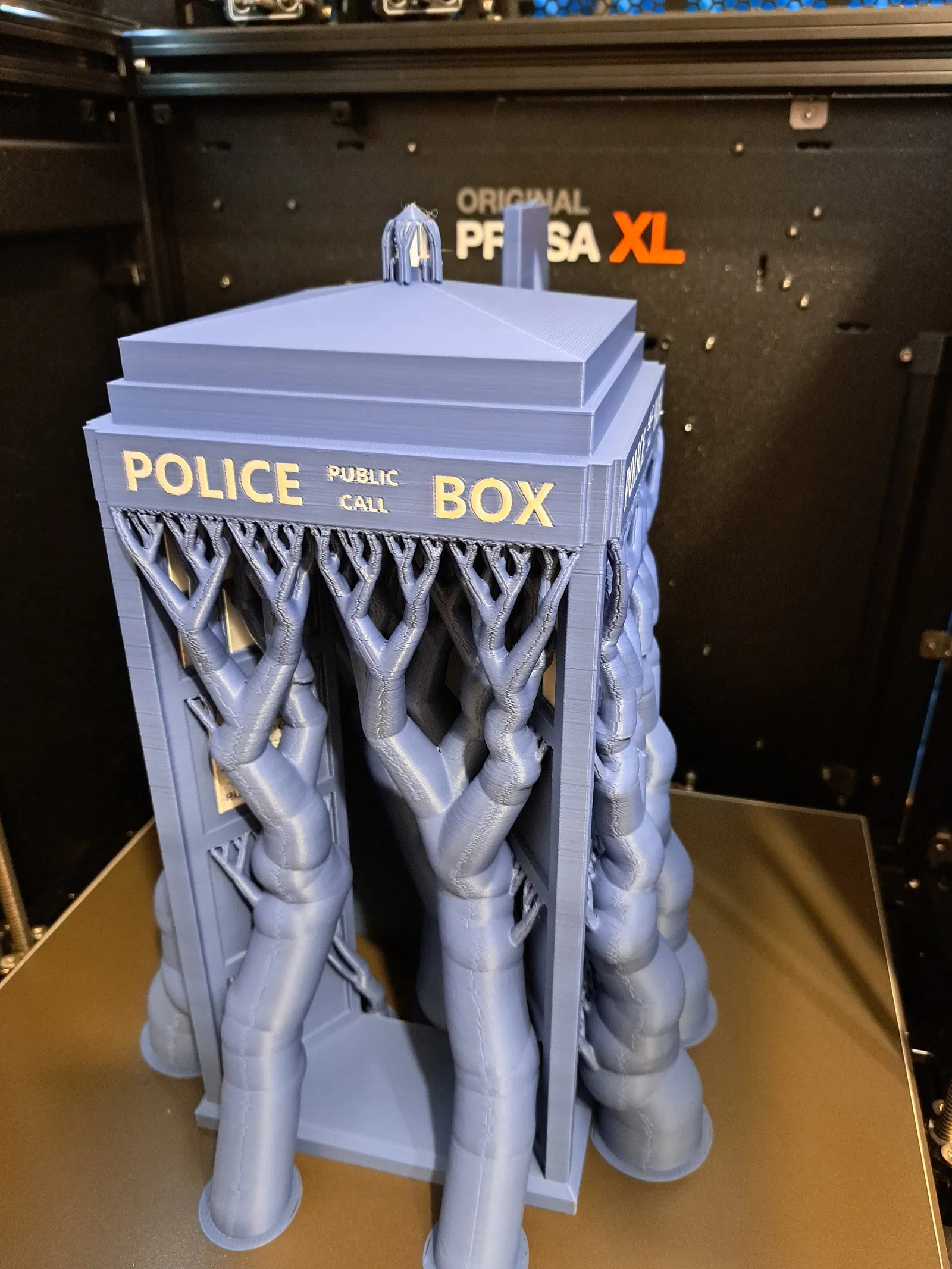 Mẫu hộp đựng khăn giấy dạng TARDIS (Doctor Who), thiết kế để chụp lên tissue box. Có nhiều kích thước (232×115×50, 234×117×63/73, 258×122×90), bản 3 phần cho MK4 và tùy chọn mái tháo rời.