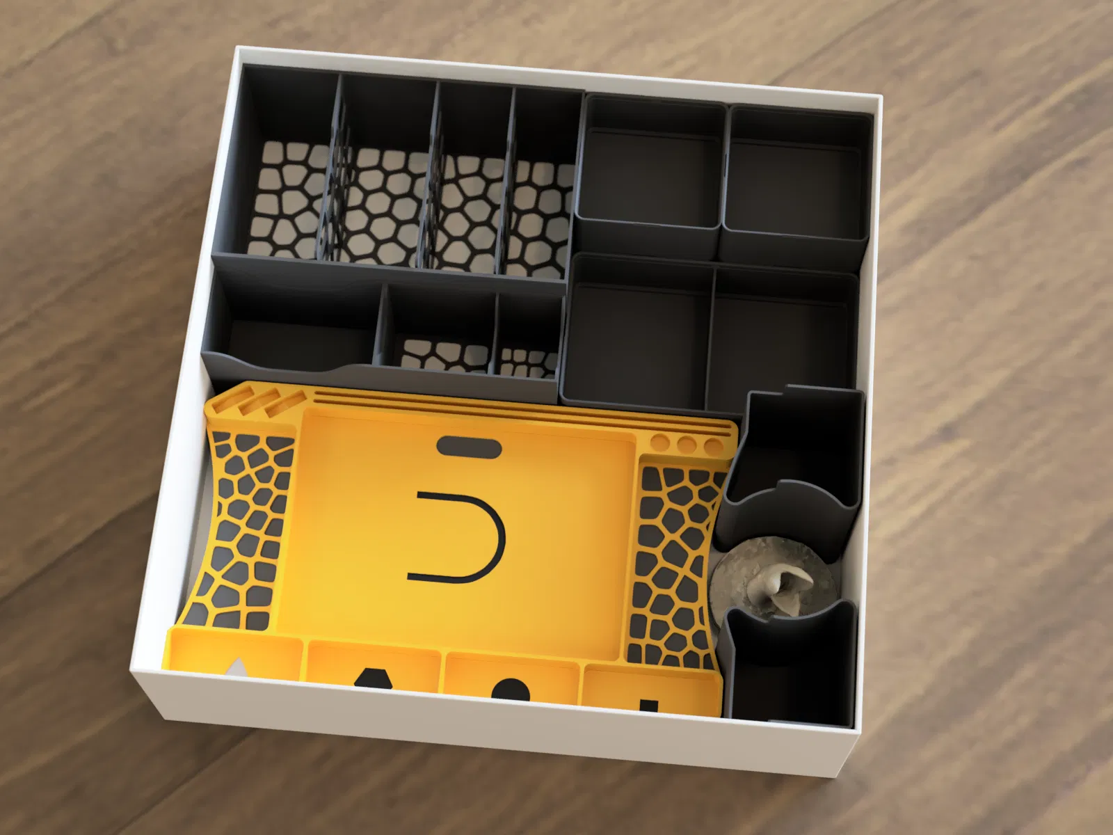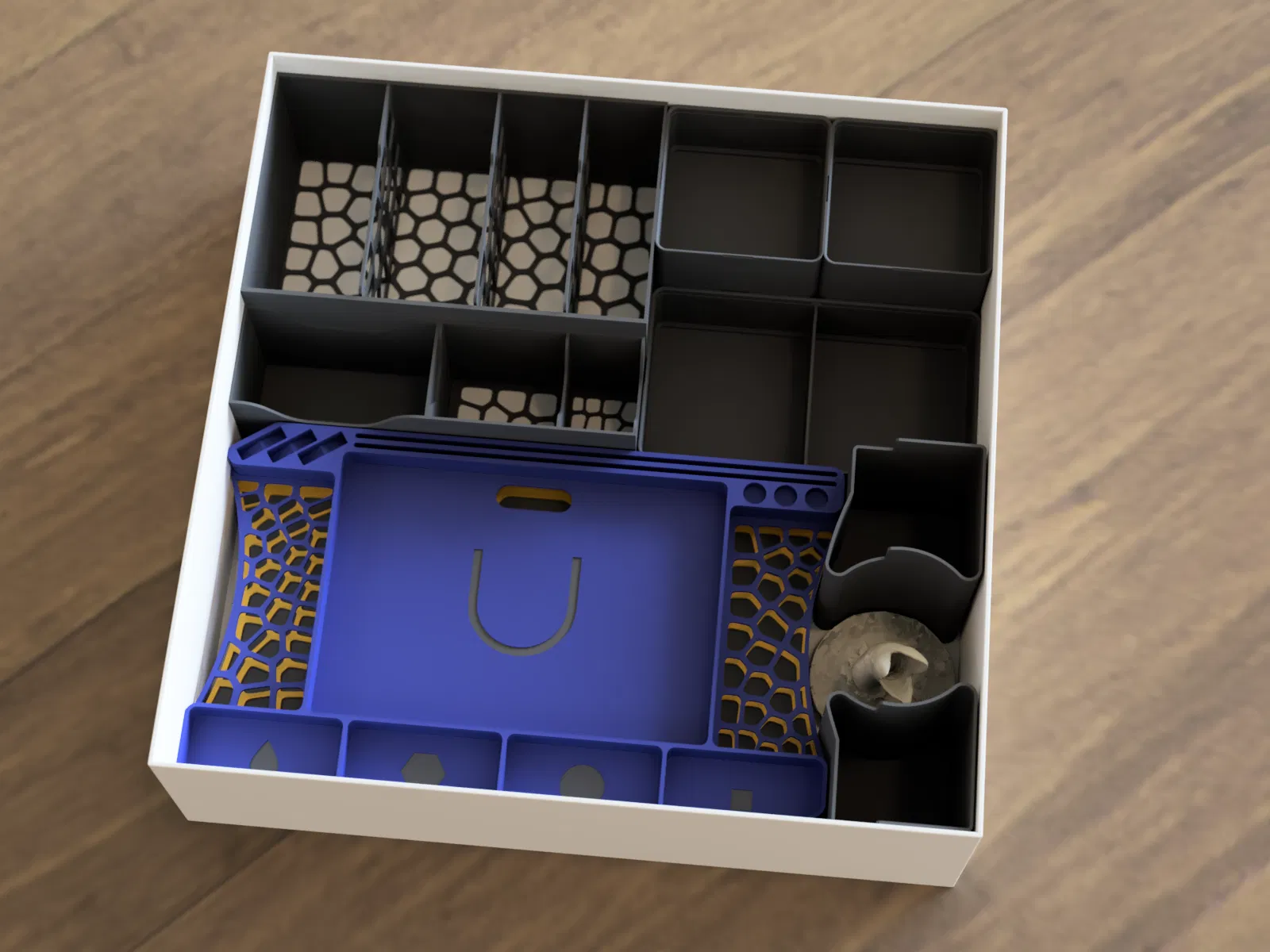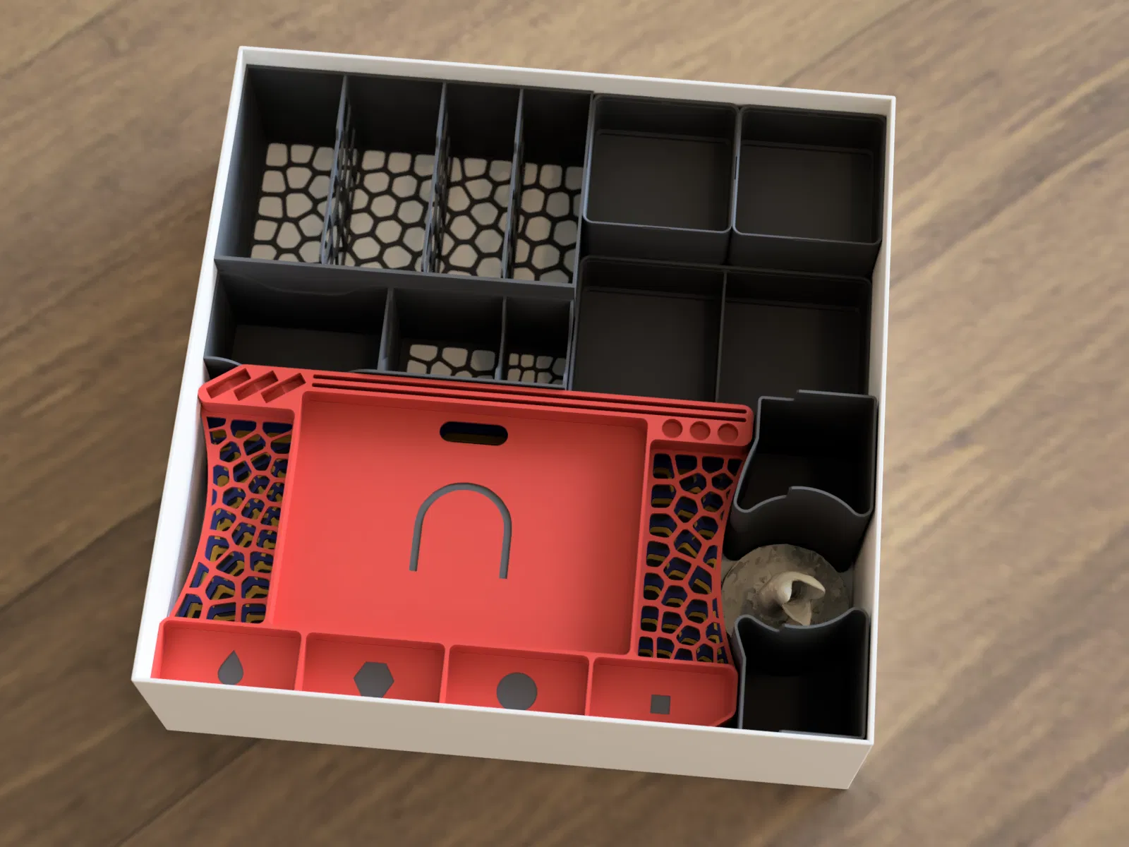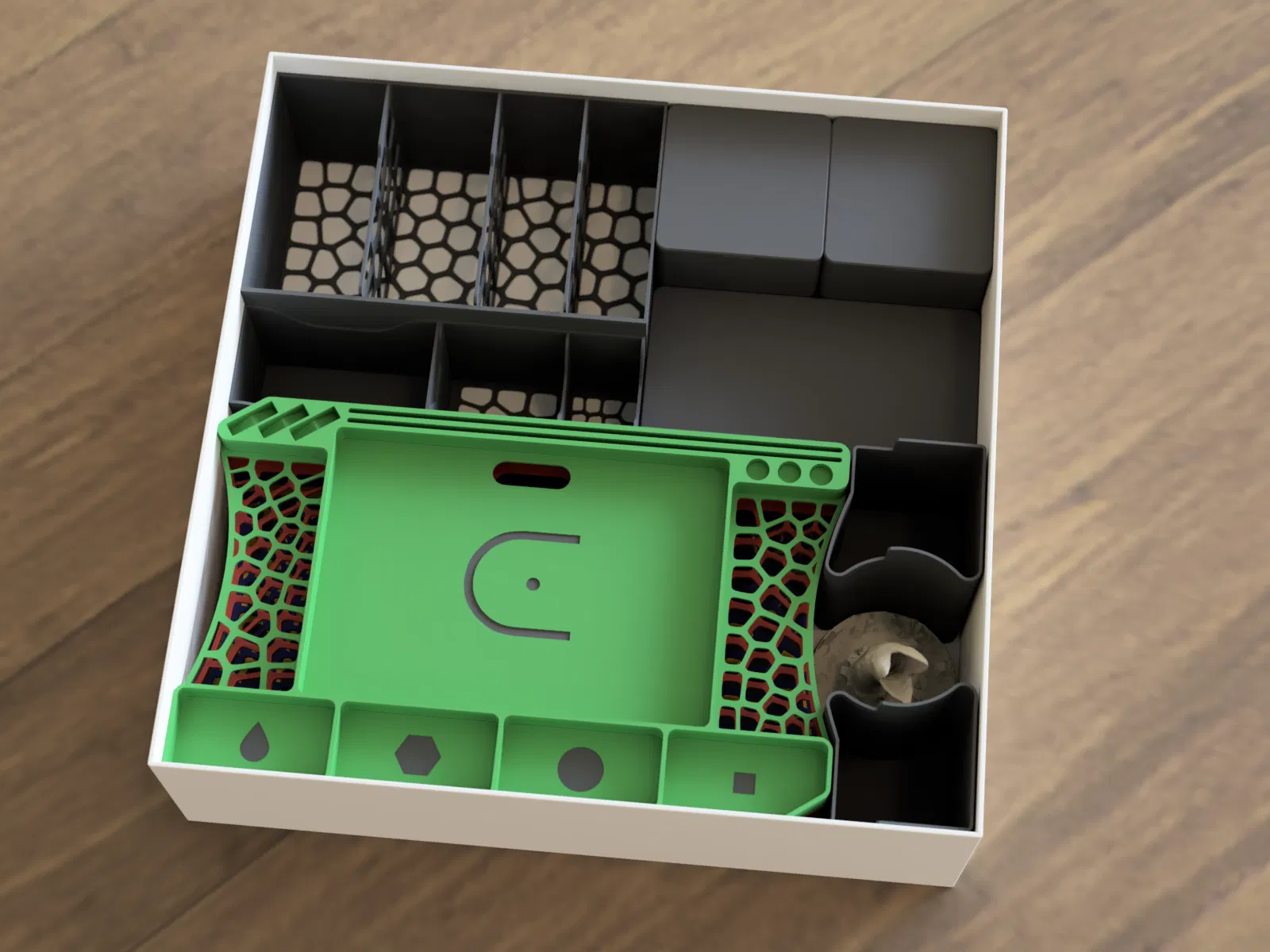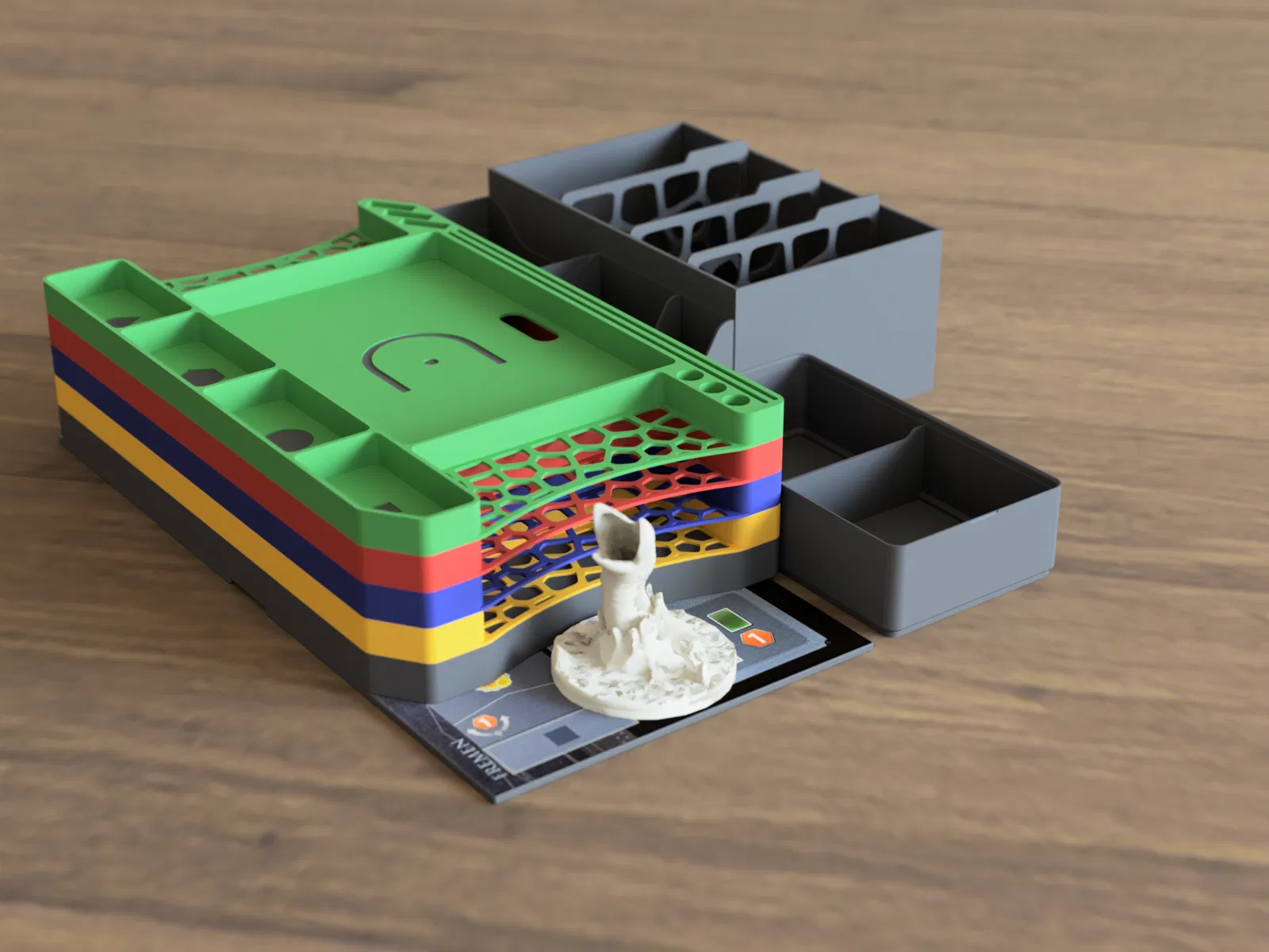 - Hộp đựng token dạng stackable (4x vuông + 2x rộng) kèm nắp.
