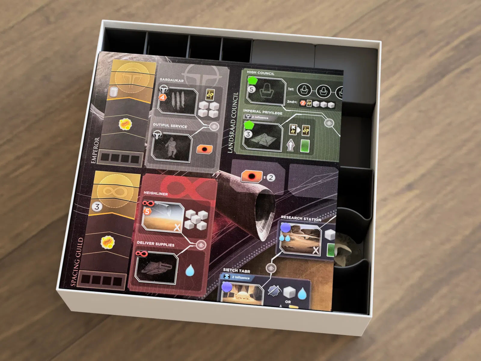 - 1 holder cho CHOAM contracts. Có thể dùng trong lúc chơi như một draw deck.