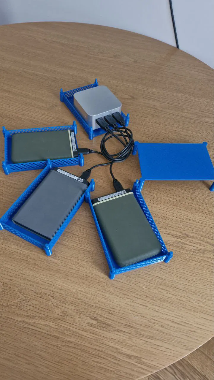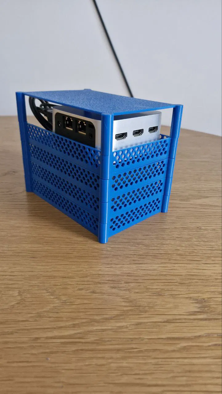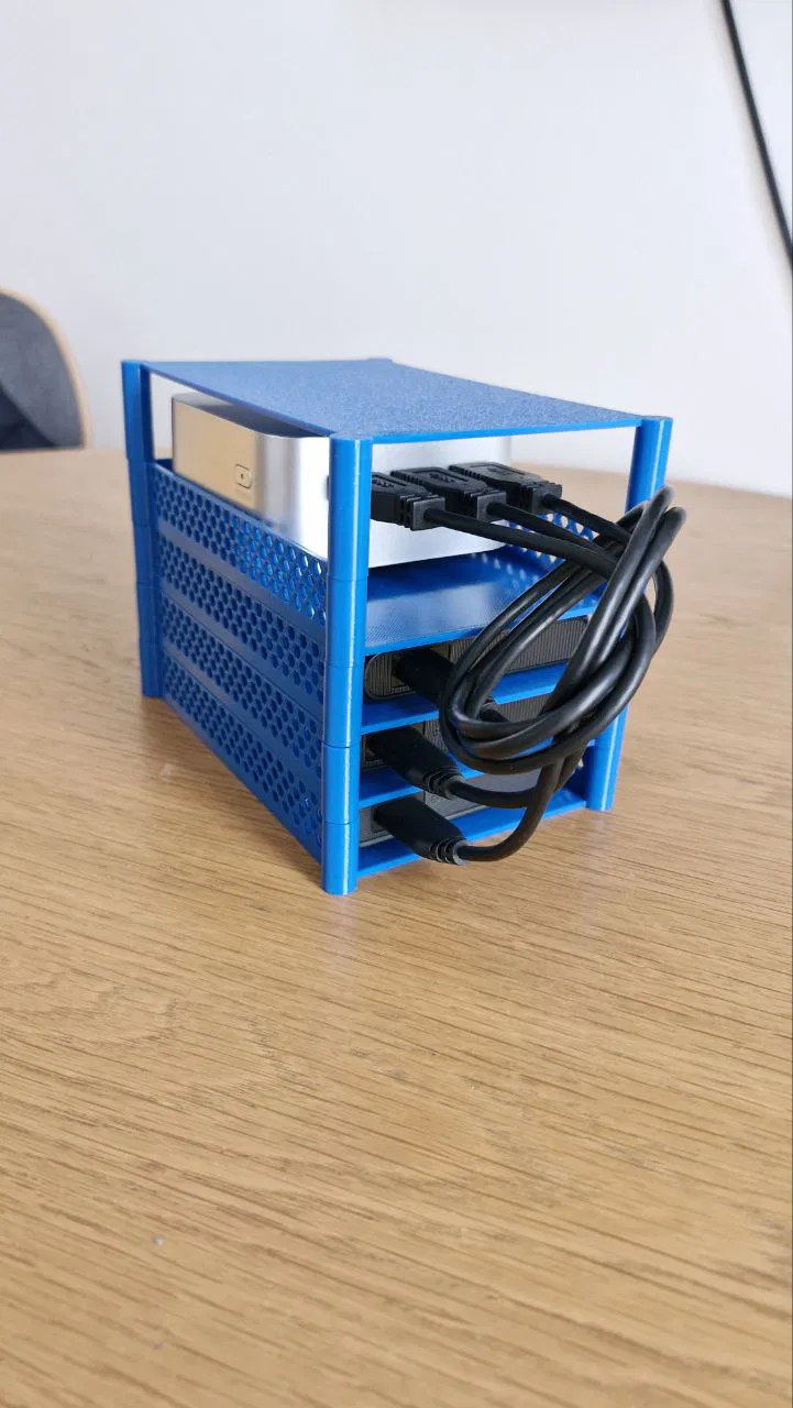 Mẫu 3D này là một kệ/desk NAS tại nhà kiểu built-in-place với các tầng có thể xếp chồng, mỗi tầng được thiết kế để chứa các ổ cứng HDD StorjED và desktop T8 Plus. Mỗi tầng đều mang tính modular, có nắp trên tháo rời riêng để dễ tiếp cận và bảo trì, giúp bạn tùy biến cấu hình theo nhu cầu lưu trữ. Thiết kế tập trung tối ưu không gian, với các khay HDD đo kích thước riêng và một bệ chuyên cho T8 Plus, tất cả tích hợp trong cấu trúc tối giản nhằm đảm bảo thông gió và quản lý dây gọn gàng, phù hợp hài hòa với góc làm việc tại nhà hiện đại.