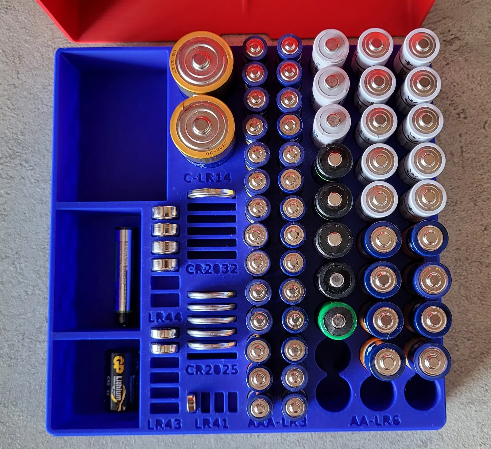 Giải quyết nỗi lo về pin thất lạc với hộp đựng pin đa năng, thiết kế thông minh sắp xếp khoa học mọi loại pin từ AA, AAA, C đến pin cúc áo CR2032, LR44. Nắp đậy kín bảo vệ pin khỏi bụi bẩn, ẩm mốc và đoản mạch. Chiếc hộp này giúp không gian sống ngăn nắp, dễ dàng tìm đúng loại pin cần dùng, đặc biệt hữu ích cho gia đình có nhiều thiết bị điện tử. In bằng PLA hoặc ABS, có thể tùy chỉnh kích thước. Sắm ngay để cuộc sống tiện nghi hơn!