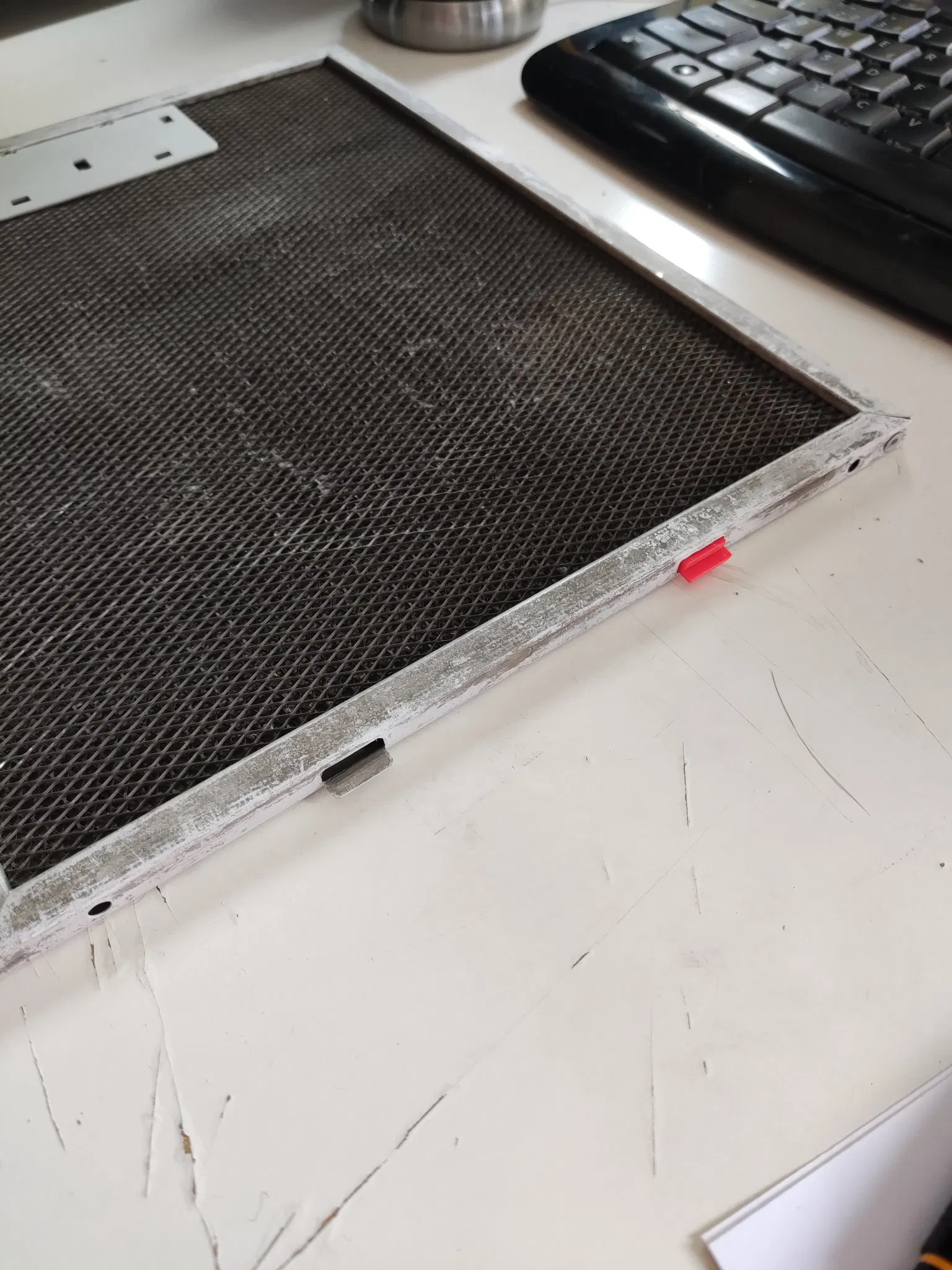 Một sự thay thế cho các tab kim loại của các bộ lọc mui xe của Electrolux.