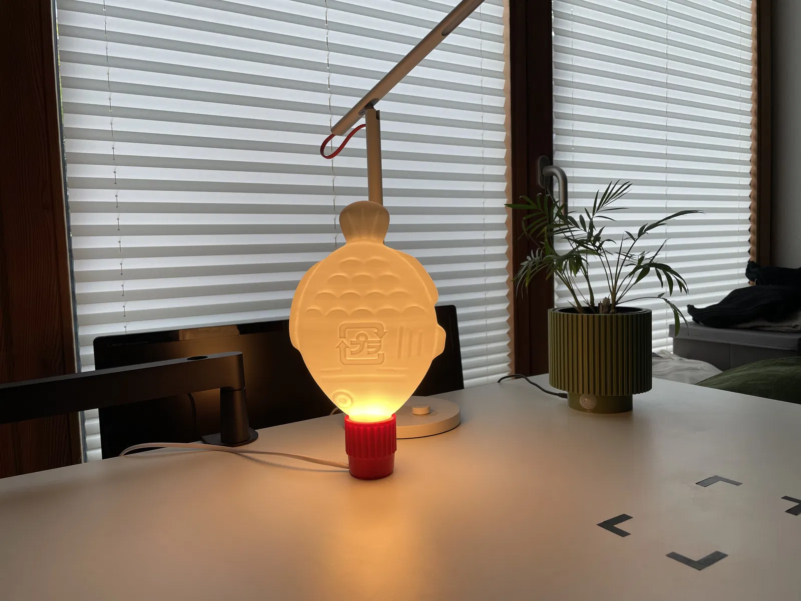 Bản redesign đèn Soy Fish Lamp (reworked again), tinh chỉnh lại tỷ lệ. Đế hỗ trợ socket G9 tiêu chuẩn. Khuyến nghị in thường (không vase mode): 3 wall layers, 0% infill, adaptive layer heights cho các đoạn quan trọng.