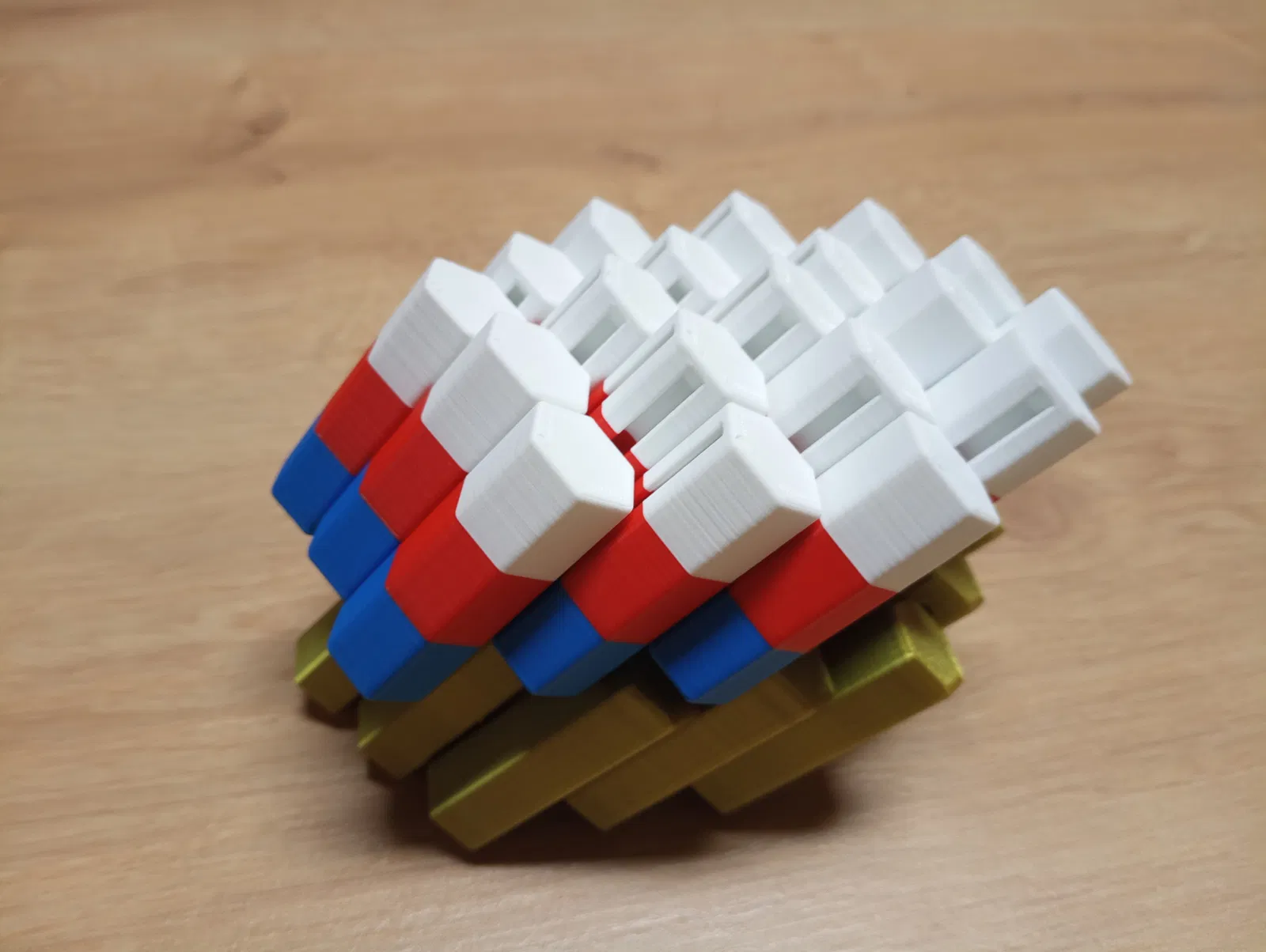 Đồ chơi vui để nghịch. Các cột lục giác được nối với nhau có thể trượt lên xuống.