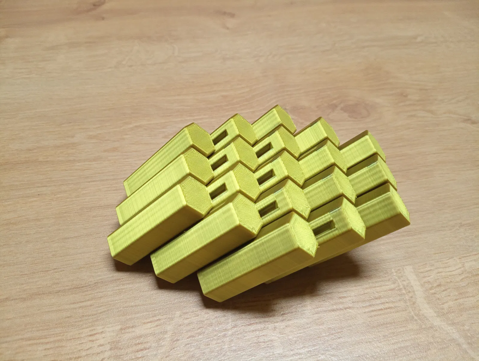 Đồ chơi fidget dạng tổ ong gồm các cột lục giác trượt lên xuống, linh hoạt và đã khớp sẵn. In print in-place một lần là xong, không cần Supports. Gợi ý infill 5–15%, layer 0.2mm hoặc thấp hơn.