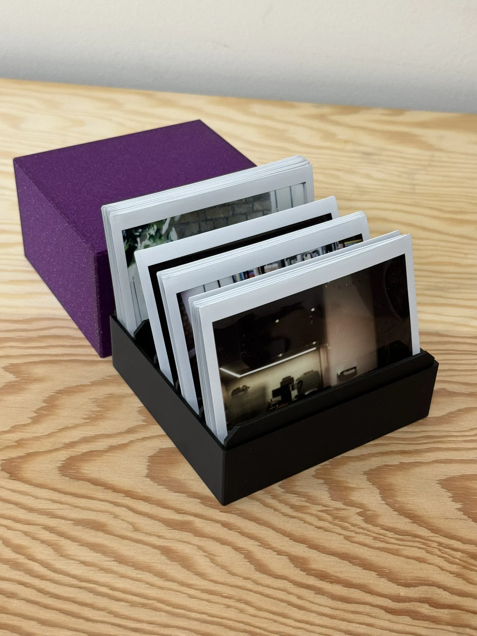 Hộp đựng ảnh Fujifilm Instax Wide với 5 ngăn riêng giúp ảnh đứng gọn gàng, dễ sắp xếp. Sức chứa khoảng 85 tấm (ước tính 5 x 17). Thiết kế đơn giản, in 3D được với hầu hết layer height.