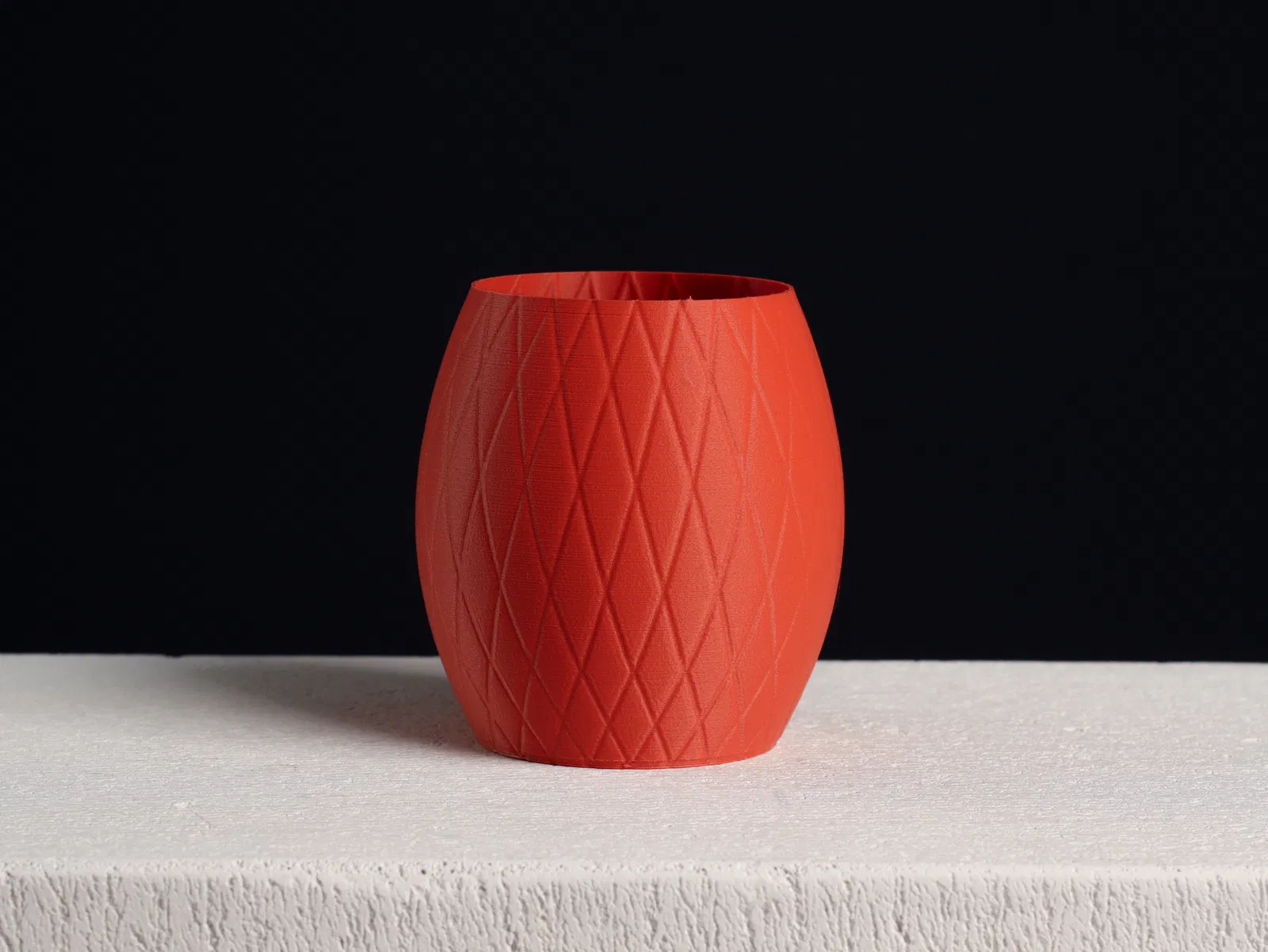 Ống cắm bút chì với bề mặt vân đan (knitted texture), được thiết kế trong Fusion360 để in theo chế độ vase mode.