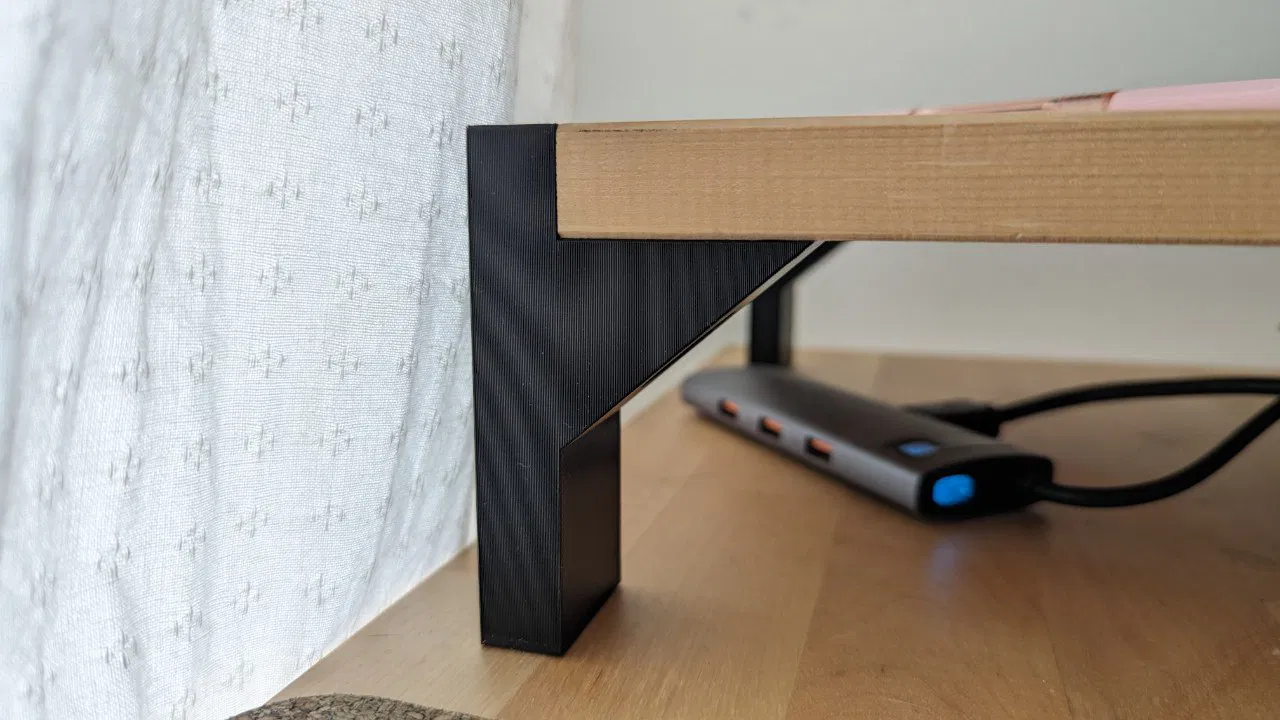 Bộ chân tối giản giúp kệ Ikea Ivar đứng độc lập như bàn/kệ. Mỗi chân bắt 1 vít gỗ phù hợp, đủ ngắn để không xuyên mặt kệ. Khuyến nghị in PLA/PETG, 10% infill cho tải nhẹ và tăng infill khi cần.