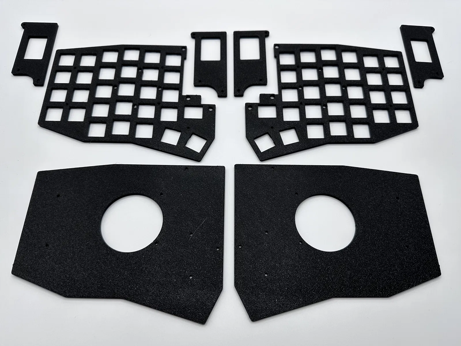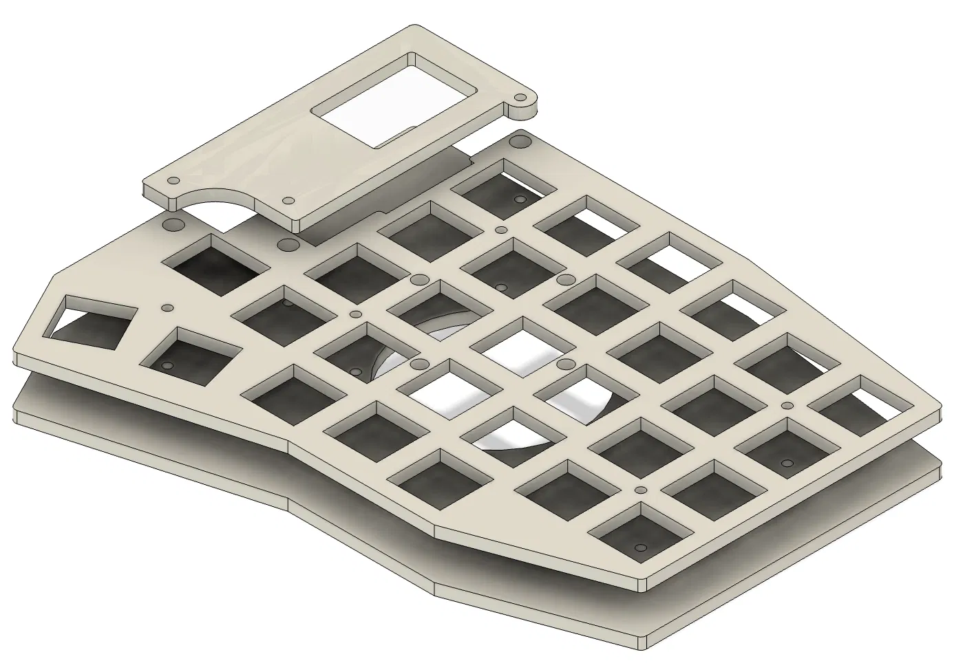 Các key plate có rãnh để switch gài vào. Bản key plate đời cũ không có rãnh đã bị gỡ khỏi repo. Key plate có rãnh nên in với mặt đẹp hướng xuống bed, nên file sẽ có phiên bản tay phải & tay trái.