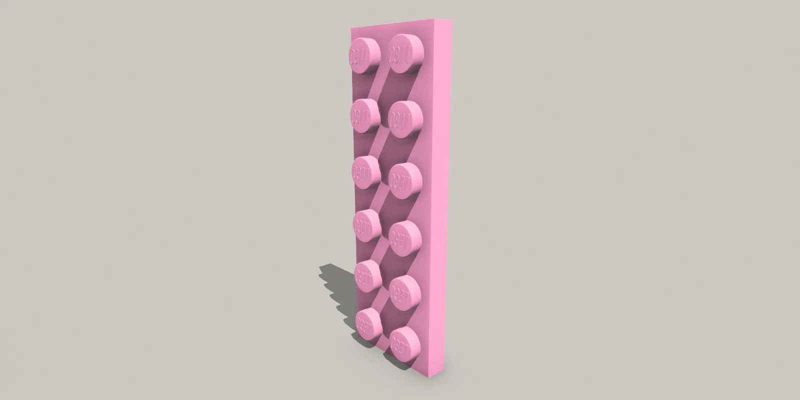 Model LEGO - Compatible Plate 2x6 (reverse engineering), tương thích hệ LEGO® nhưng là dự án độc lập, không liên kết LEGO Group. Phù hợp 3D printing cho hobbyist/creator; nên dùng vật liệu chất lượng cao để khít và bền.
