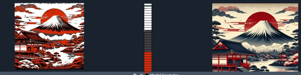 Mẫu Mount Fuji Hueforge với hình Mount Fuji được tạo bằng AI. Thiết lập in 100% infill, layer height 0.08mm và base layer 0.2mm. Dùng 4 loại PLA và swap filament theo đúng các mốc layer để ra hiệu ứng màu.