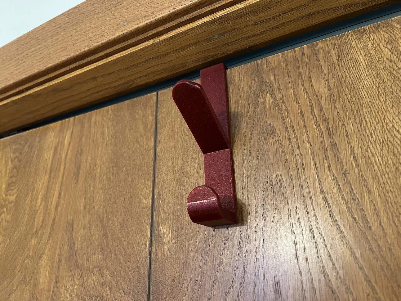 Móc treo đơn giản dạng vắt qua mép cửa để treo quần áo, khăn tắm, áo choàng… Bản remix được chỉnh để vừa cửa sâu 35mm, bo thêm fillet và tinh chỉnh hình học phần kẹp phía sau cửa.