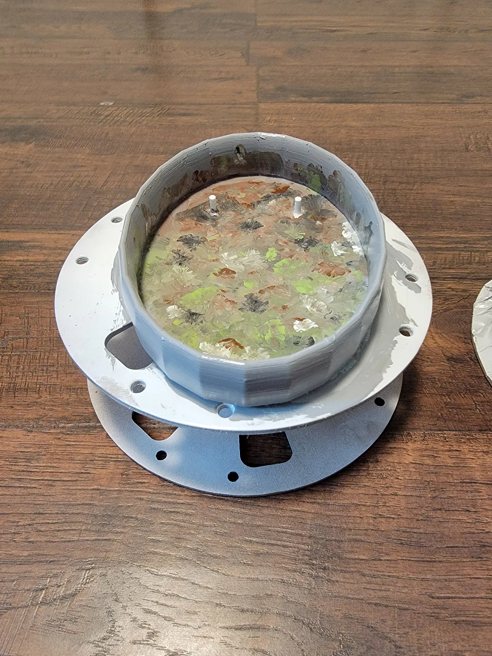 Mình rất thích ý tưởng dice tower “mushroom child”, nhưng mình muốn đường dẫn cho xúc xắc rơi xuống mượt hơn. Mình cũng không muốn xúc xắc lăn rớt khỏi bàn. Dice tower này có miệng thả lớn, phù hợp cả với xúc xắc to, và ôm khít vào phần base nhờ các peg làm chuẩn canh. Bạn có thể dán tower vào base, hoặc để rời như vậy cho dễ cất gọn.