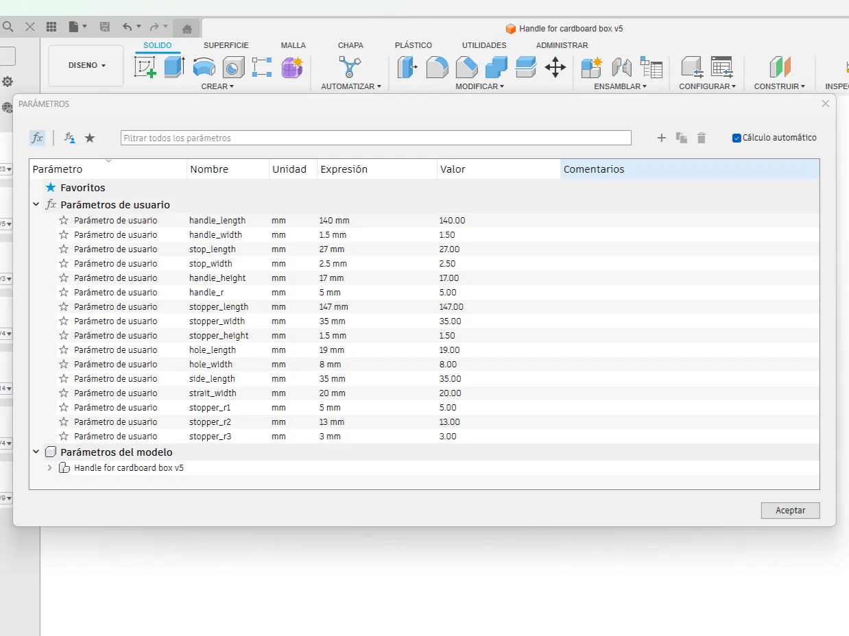 Tay xách cho thùng carton - Tham số (Parametric)