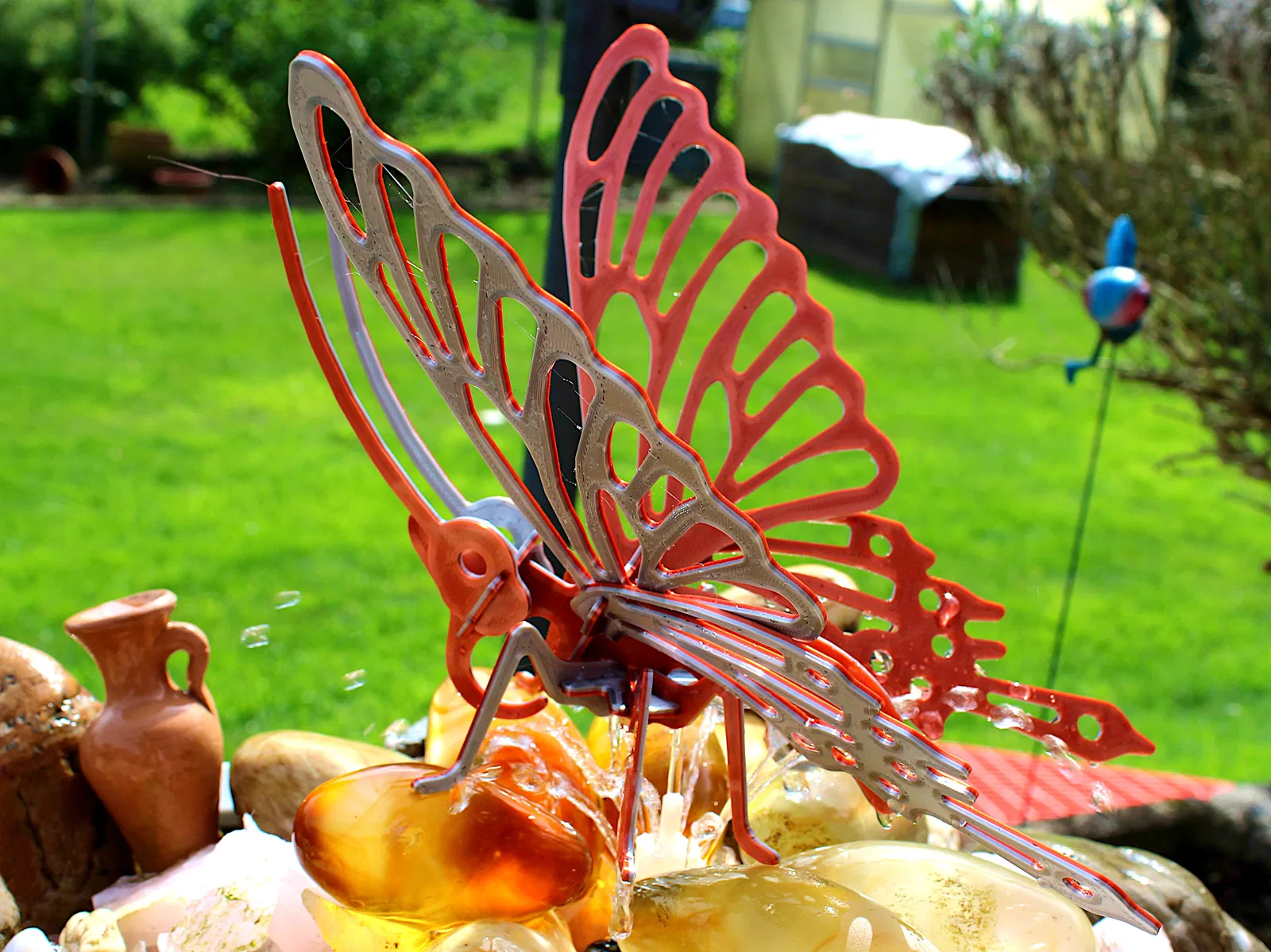 In phần cánh bắt đầu bằng một màu nổi, tươi (với mặt có hoa văn) úp xuống build plate. Sau đó đổi sang một trong các màu của phần thân, hoặc dùng màu đậm hơn một chút / màu tương phản với màu cánh còn lại mà bạn đã chọn. -