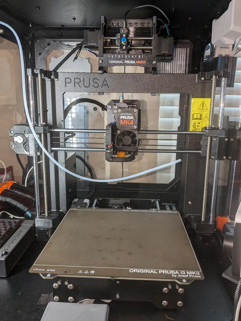Máy của mình đặt trong Original Prusa enclosure. Nắp enclosure của mình cao 529/530mm tính từ sàn. Chiều sâu enclosure khoảng 580mm.