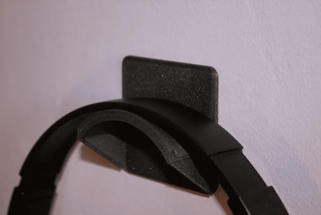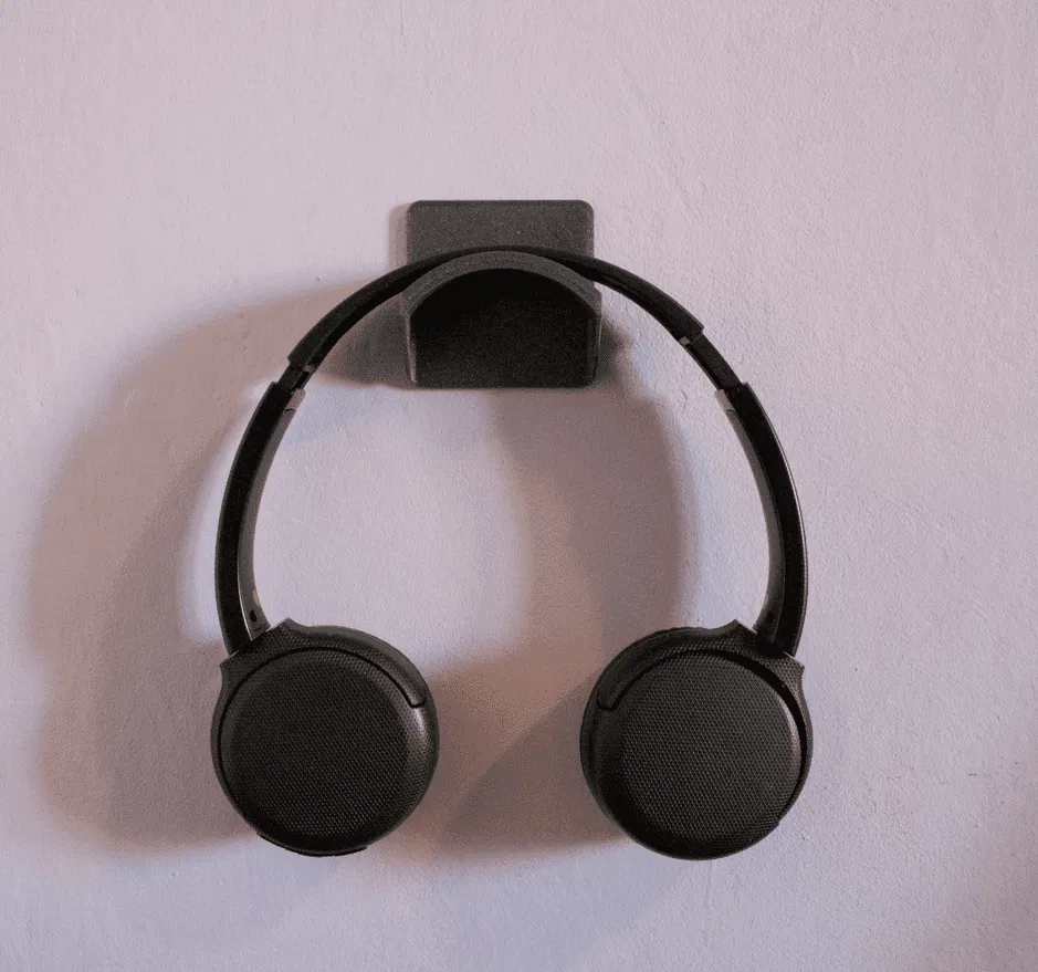 Móc treo tai nghe gắn tường giúp gọn gàng phòng và góc làm việc, hợp với nhiều mẫu headphone. Thiết kế dùng băng keo dán kiểu 3M VHB (không có lỗ bắt vít), in dễ, infill 10%, không cần support.