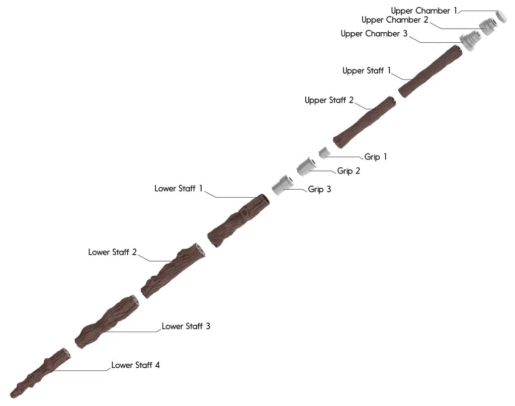 Mẫu gậy của Chirrut Imwe (Rogue One), bản in lớn dài khoảng 52 inch. Không cần support; các file STL đã sẵn orientation để in. Khớp nối male/female khá khít, có thể cần chà nhám/gọt nhẹ để lắp vừa.
