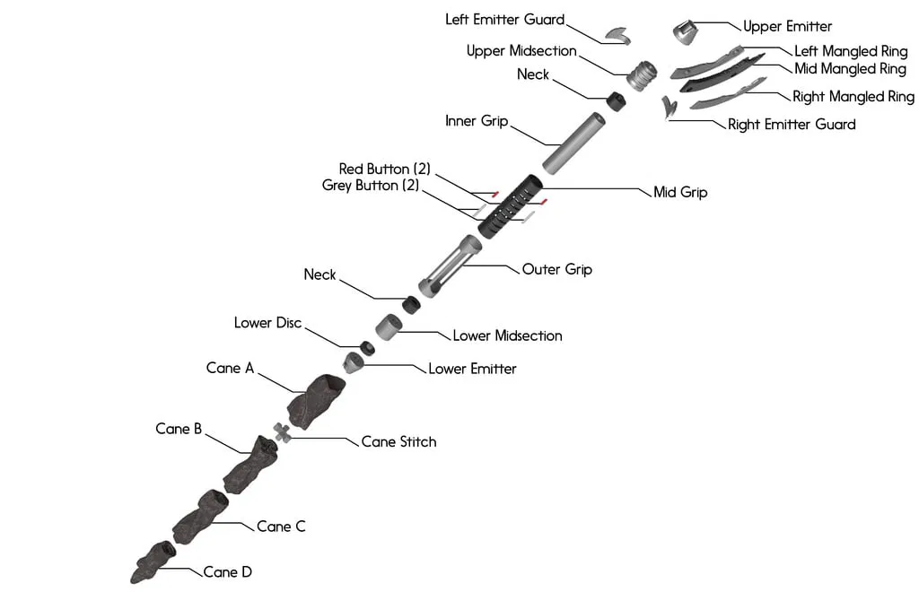 Maul's Lightsaber lần đầu xuất hiện trong Rebels, có thiết kế kèm gậy chống. Mẫu có thêm hiệu ứng hư hại để giống bản “đời thật”. File STL đặt sẵn hướng in; cần khá nhiều support (Cura) cho nhiều chi tiết.