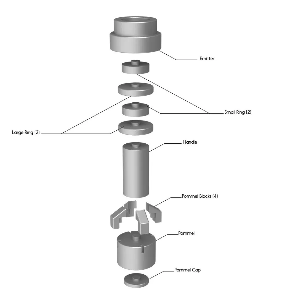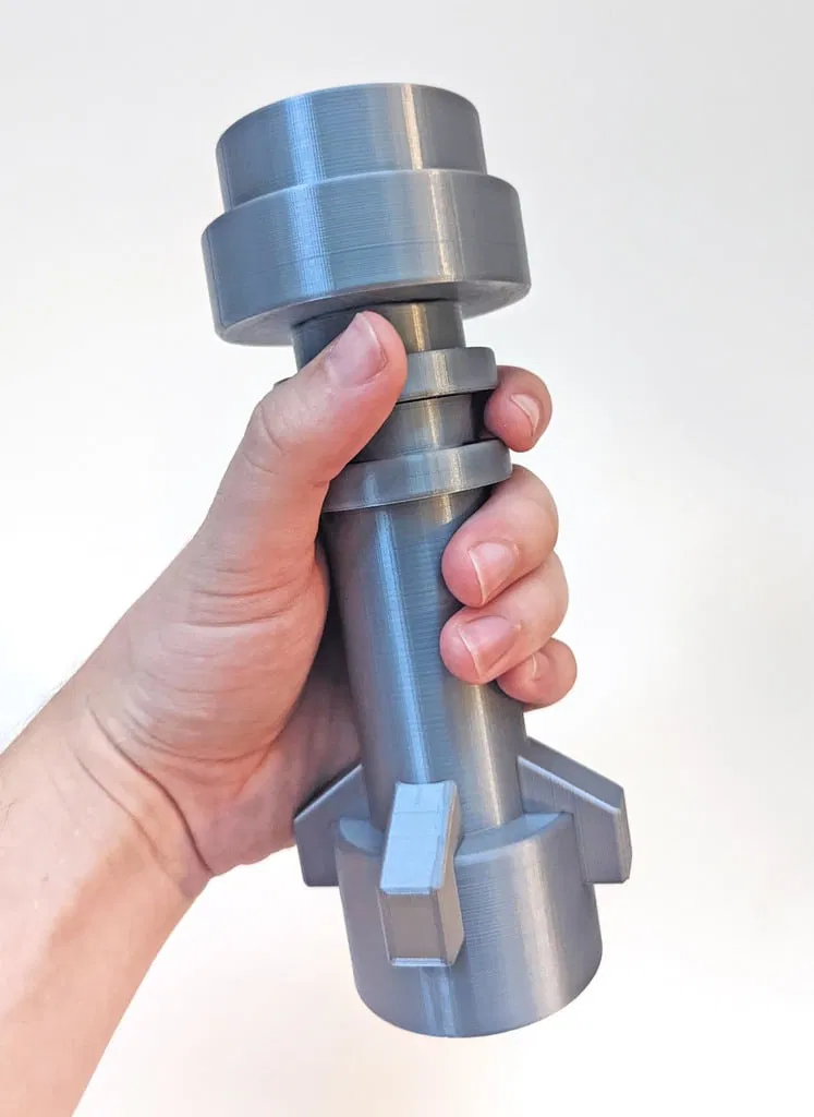 Mẫu LEGO Lightsaber kích cỡ người cầm, thiết kế để in theo orientation đã sắp sẵn. Không cần supports cho đa số phần; pommel có thể cần support tùy máy. Có kèm pommel cap để che stringing nếu in không support.