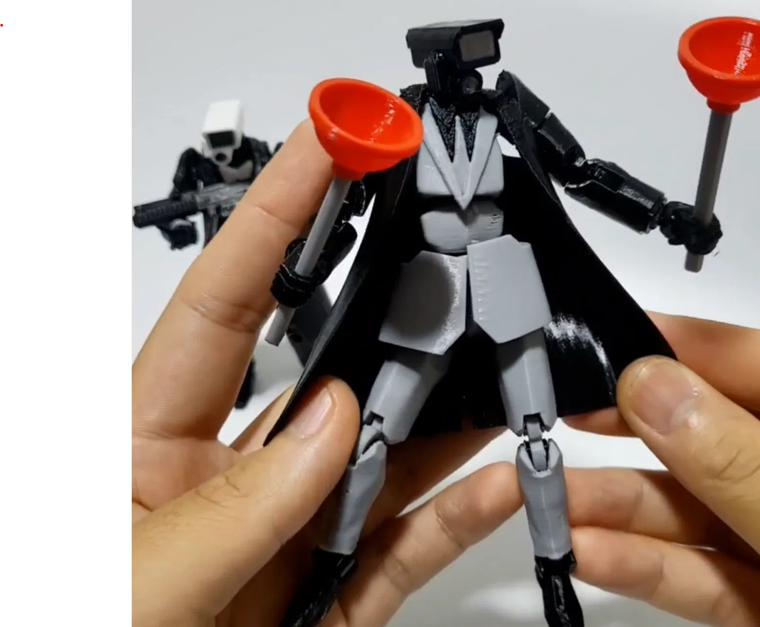 Khám phá mô hình "Skibidi Toilet" Camara Man độc đáo, tái hiện sinh động nhân vật meme nổi tiếng với phụ kiện cây thông tắc bồn cầu màu đỏ cam ấn tượng. Mô hình được in 3D chi tiết từ nhựa PLA, mang đến vẻ ngoài "ngầu" và hài hước, là vật phẩm trang trí hoặc quà tặng độc đáo cho người yêu thích văn hóa mạng. Dễ dàng tùy chỉnh màu sắc và chú ý đến layer height khi in để đạt kết quả tốt nhất. Thêm ngay mô hình này vào bộ sưu tập để thể hiện cá tính và sự am hiểu về các trào lưu hot!
