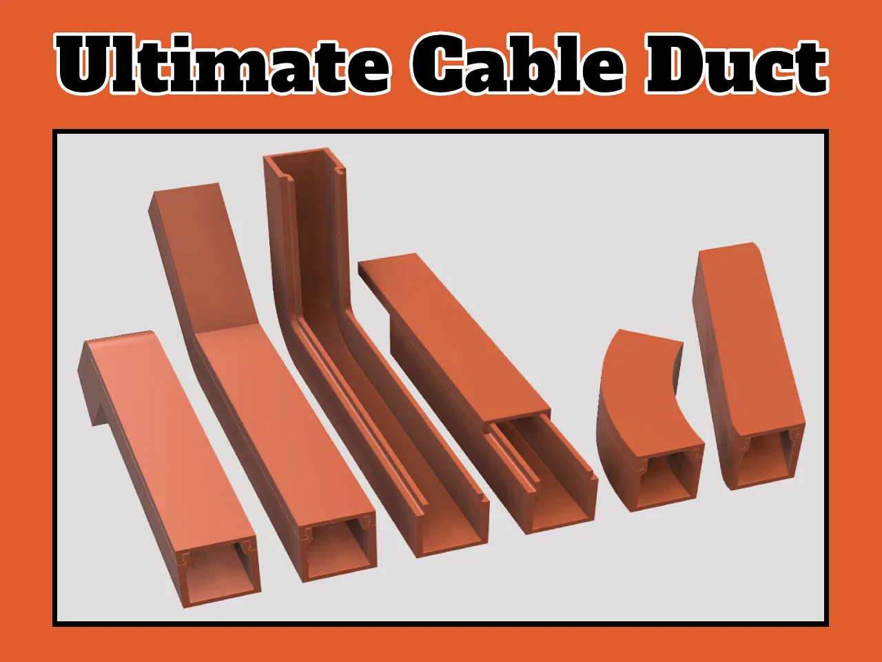 Cable Duct Parametric giúp giấu và sắp xếp dây cáp gọn gàng với thiết kế base + lid (trượt hoặc snap). Có 2 bộ kích thước (1 dây và ~4 dây), kèm file test tolerance. Tùy chỉnh dễ trong Fusion360 và dùng connector để nối các đoạn.