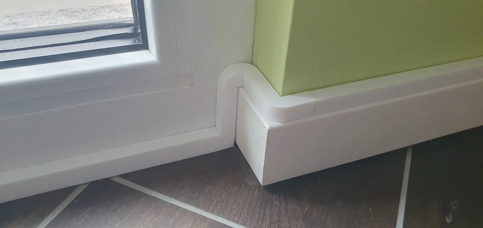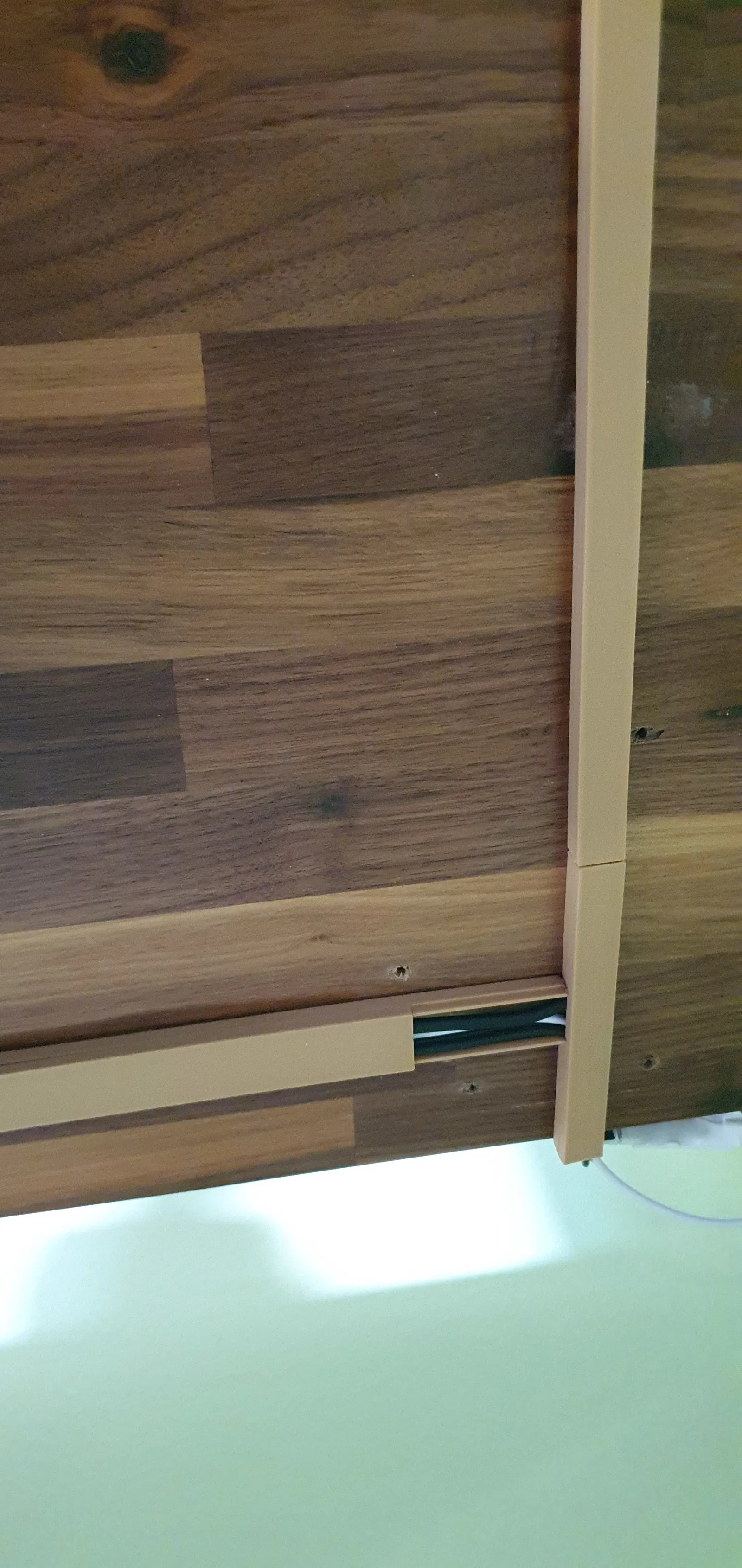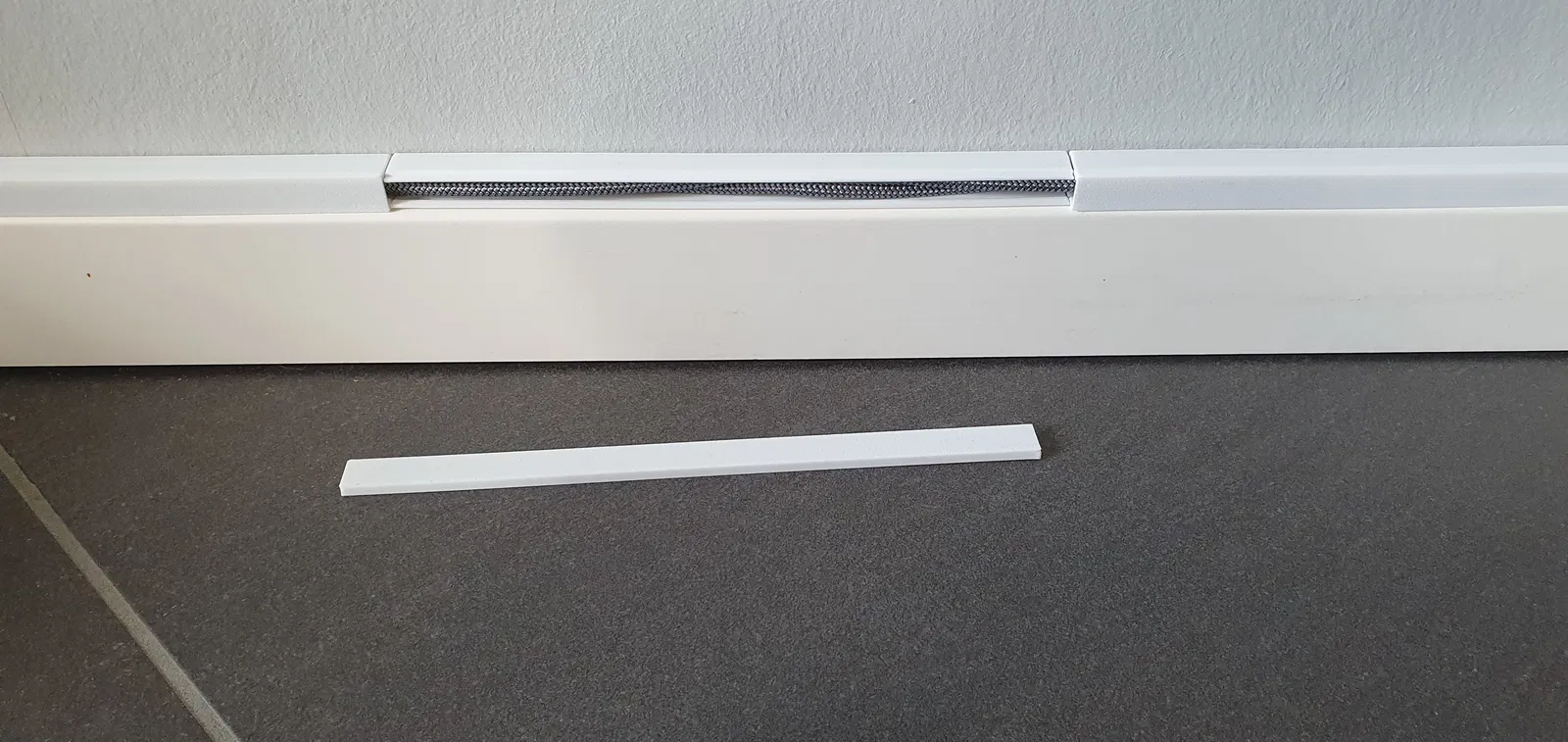 Cable duct gồm 2 phần: phần đế (base) và nắp (lid). Nắp có thể trượt vào từ bên hông hoặc bấm (snap) từ phía trên xuống. Khi lắp vào, nắp nằm khít với đế, tạo cảm giác rất gọn và sạch.