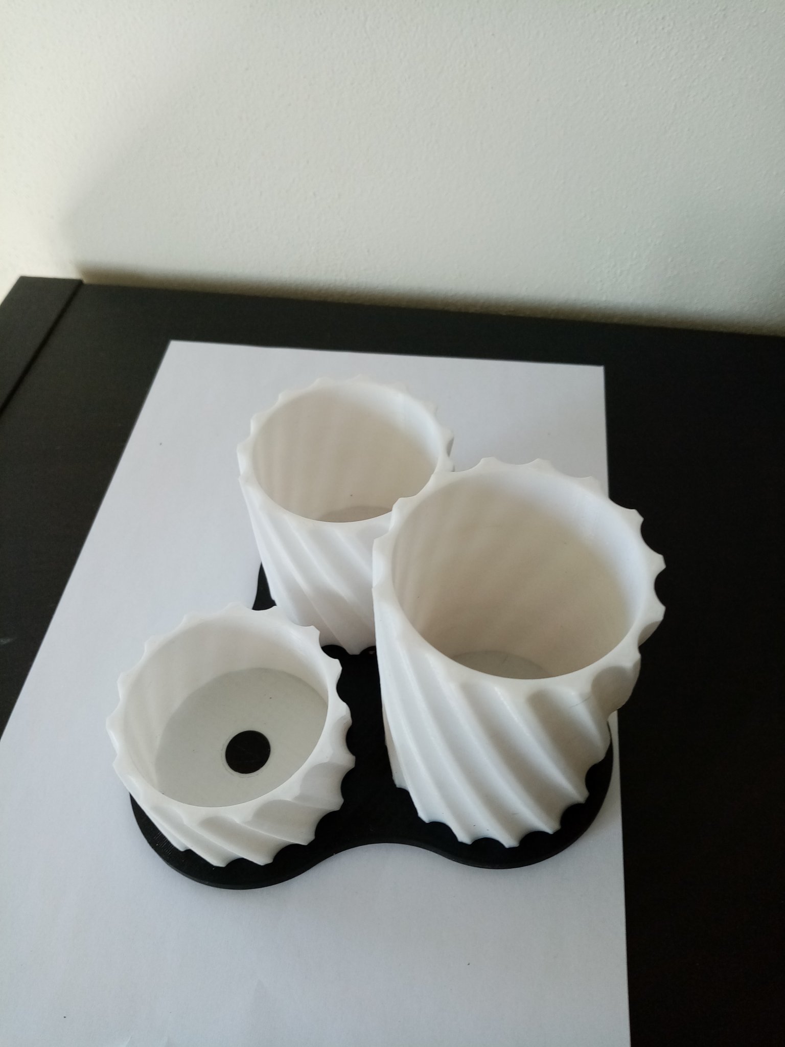 Giá đỡ bút dễ in. Kích thước khoảng 16 x 16 x 10.5cm. Nó có thể được in mà không cần hỗ trợ, vì sử dụng góc tối đa 45°. Bạn có thể sử dụng filament PLA, nhiệt độ 205C-55C, chiều cao lớp 0.3mm. Cảm ơn bạn đã quan tâm.